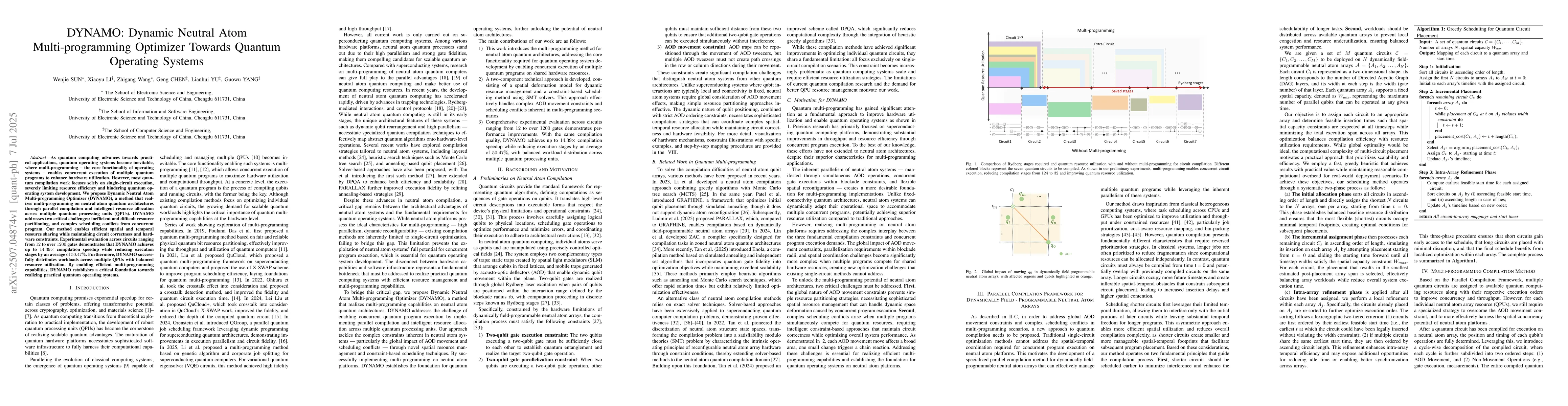 As quantum computing advances towards practical applications, quantum operating systems become inevitable, where multi-programming -- the core functionality of operating systems -- enables concurrent execution of multiple quantum programs to enhance hardware utilization. However, most quantum compilation work focuses solely on single-circuit execution, severely limiting resource efficiency and hindering quantum operating system development. We propose Dynamic Neutral Atom Multi-programming Optimizer (DYNAMO), a method that realizes multi-programming on neutral atom quantum architectures through parallel compilation and intelligent resource allocation across multiple quantum processing units (QPUs). DYNAMO addresses two critical challenges: inefficient and difficult resource partitioning, and complex scheduling conflicts from concurrent program. Our method enables efficient spatial and temporal resource sharing while maintaining circuit correctness and hardware constraints. Experimental evaluation across circuits ranging from 12 to over 1200 gates demonstrates that DYNAMO achieves up to 14.39x compilation speedup while reducing execution stages by an average of 50.47%. Furthermore, DYNAMO successfully distributes workloads across multiple QPUs with balanced resource utilization. By enabling efficient multi-programming capabilities, DYNAMO establishes a critical foundation towards realizing practical quantum operating systems.