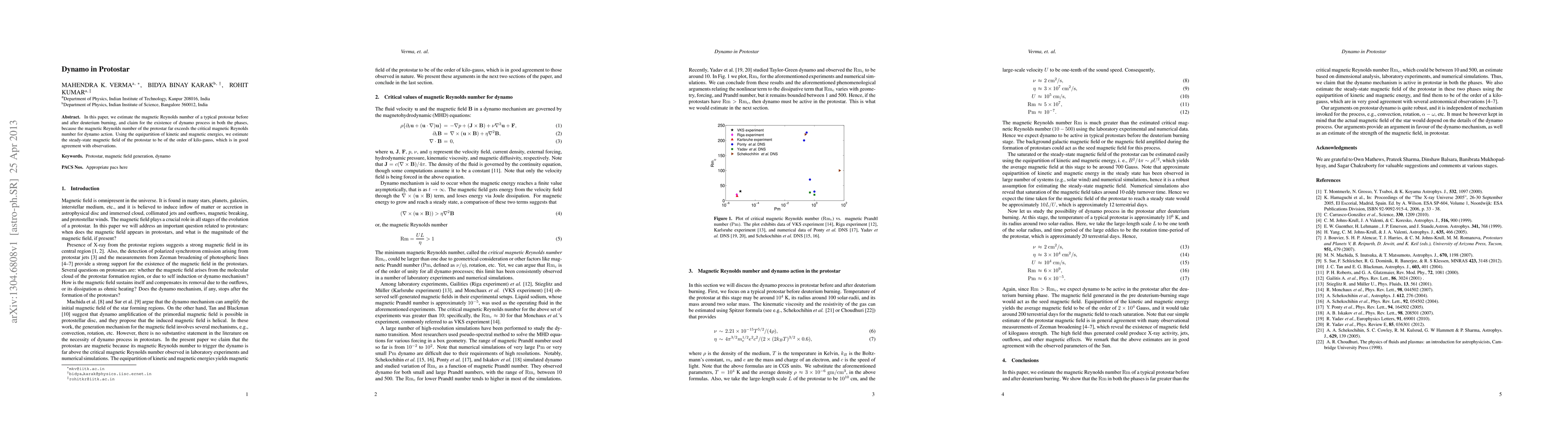In this paper, we estimate the magnetic Reynolds number of a typical protostar before and after deuterium burning, and claim for the existence of dynamo process in both the phases, because the magnetic Reynolds number of the protostar far exceeds the critical magnetic Reynolds number for dynamo action. Using the equipartition of kinetic and magnetic energies, we estimate the steady-state magnetic field of the protostar to be of the order of kilo-gauss, which is in good agreement with observations.