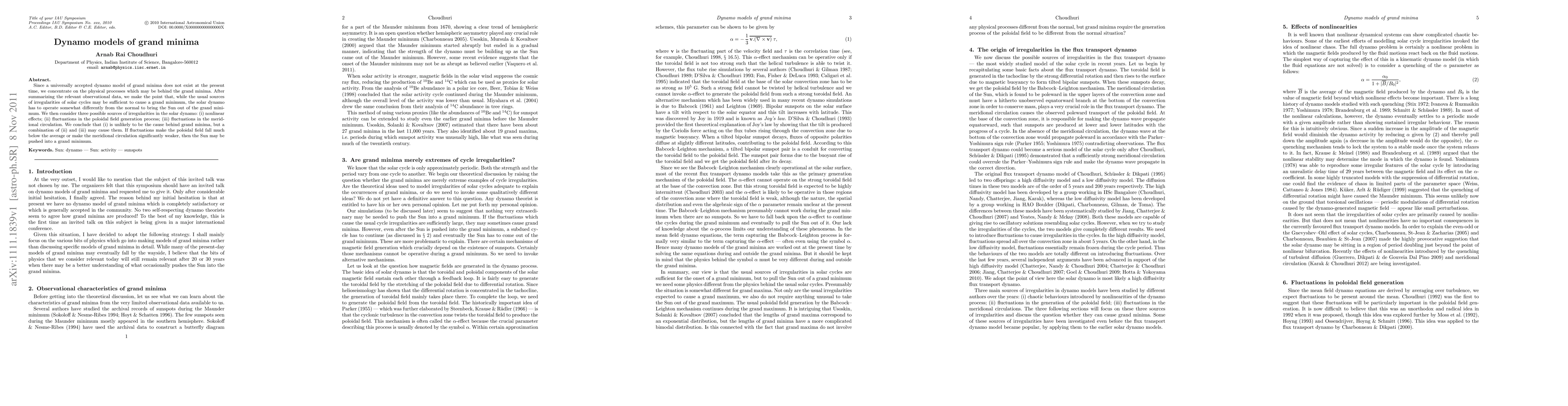 The research focuses on the physical processes behind grand minima without a universally accepted dynamo model.