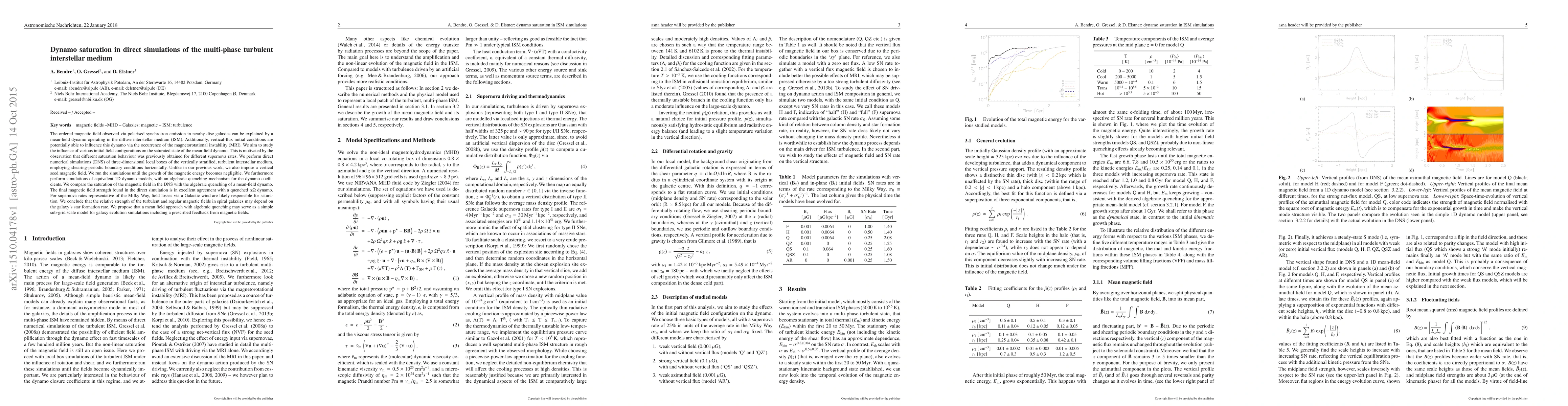 The ordered magnetic field observed via polarized synchrotron emission in nearby disc galaxies can be explained by a mean-field dynamo operating in the diffuse interstellar medium (ISM). Additionally, vertical-flux initial conditions are potentially able to influence this dynamo via the occurrence of the magneto-rotational instability (MRI). We aim to study the influence of various initial field configurations on the saturated state of the mean-field dynamo. This is motivated by the observation that different saturation behavior was previously obtained for different supernova rates. We perform direct numerical simulations (DNS) of three-dimensional local boxes of the vertically stratified, turbulent interstellar medium, employing shearing-periodic boundary conditions horizontally. Unlike in our previous work, we also impose a vertical seed magnetic field. We run the simulations until the growth of the magnetic energy becomes negligible. We furthermore perform simulations of equivalent 1D dynamo models, with an algebraic quenching mechanism for the dynamo coefficients. We compare the saturation of the magnetic field in the DNS with the algebraic quenching of a mean-field dynamo. The final magnetic field strength found in the direct simulation is in excellent agreement with a quenched $\alpha\Omega$~dynamo. For supernova rates representative of the Milky Way, field losses via a Galactic wind are likely responsible for saturation. We conclude that the relative strength of the turbulent and regular magnetic fields in spiral galaxies may depend on the galaxy's star formation rate. We propose that a mean field approach with algebraic quenching may serve as a simple sub-grid scale model for galaxy evolution simulations including a prescribed feedback from magnetic fields.