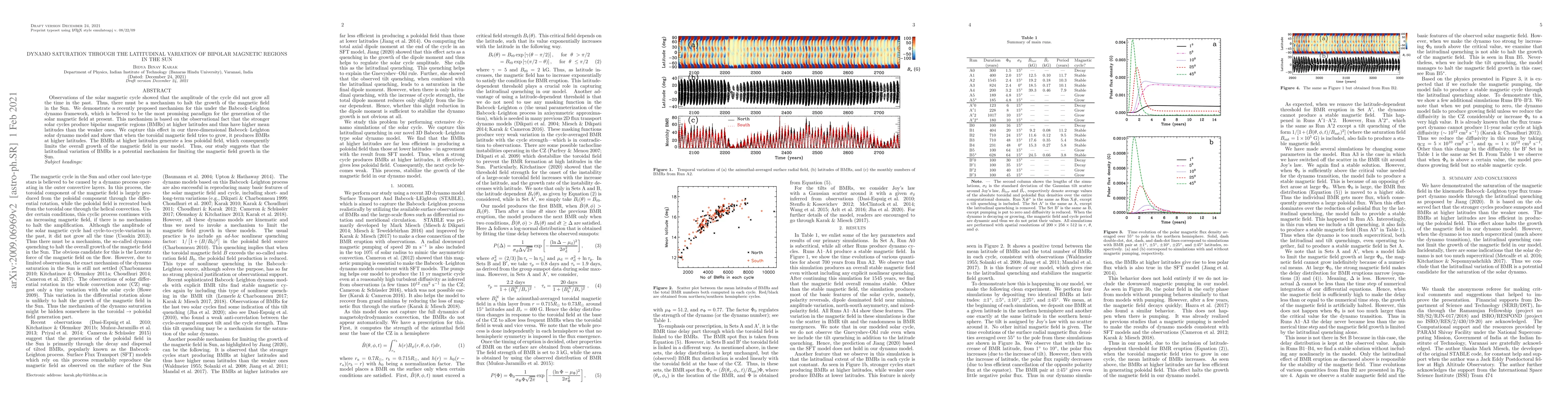 Researchers propose a mechanism for limiting solar magnetic field growth through latitudinal variation of bipolar magnetic regions, which suggests that stronger cycles have more intense magnetic activity at higher latitudes.