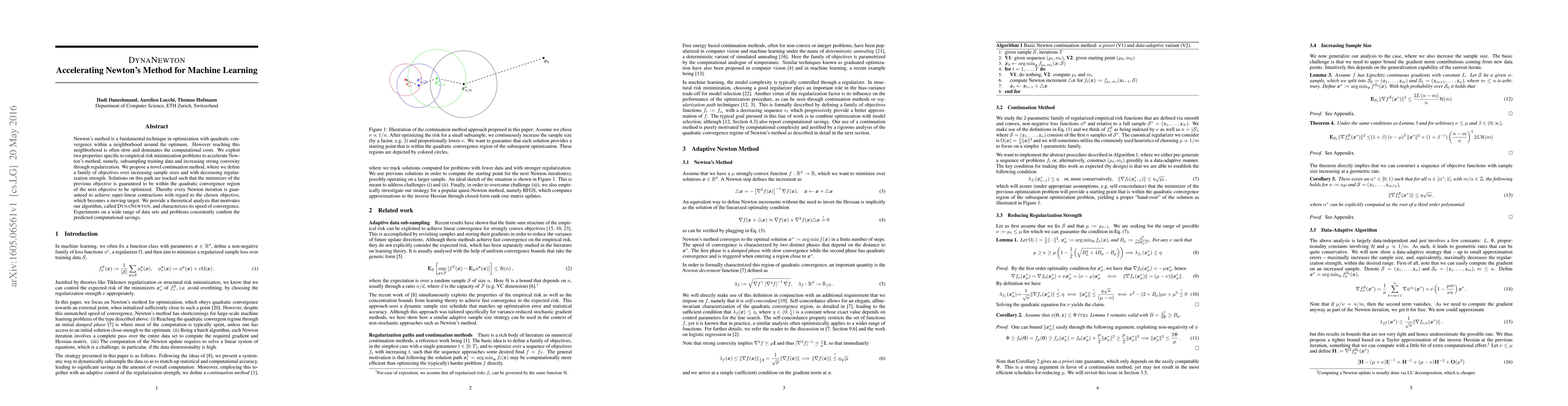 Newton's method is a fundamental technique in optimization with quadratic convergence within a neighborhood around the optimum. However reaching this neighborhood is often slow and dominates the computational costs. We exploit two properties specific to empirical risk minimization problems to accelerate Newton's method, namely, subsampling training data and increasing strong convexity through regularization. We propose a novel continuation method, where we define a family of objectives over increasing sample sizes and with decreasing regularization strength. Solutions on this path are tracked such that the minimizer of the previous objective is guaranteed to be within the quadratic convergence region of the next objective to be optimized. Thereby every Newton iteration is guaranteed to achieve super-linear contractions with regard to the chosen objective, which becomes a moving target. We provide a theoretical analysis that motivates our algorithm, called DynaNewton, and characterizes its speed of convergence. Experiments on a wide range of data sets and problems consistently confirm the predicted computational savings.