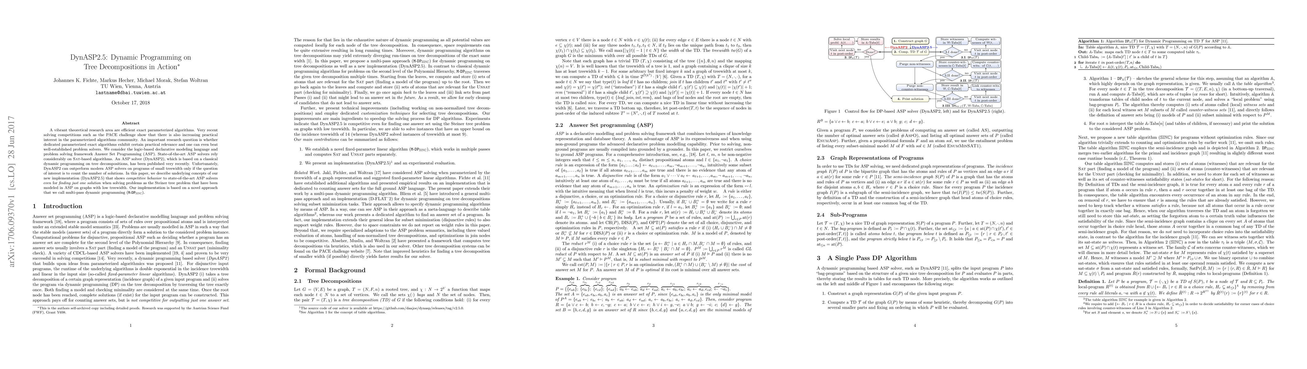 A vibrant theoretical research area are efficient exact parameterized algorithms. Very recent solving competitions such as the PACE challenge show that there is also increasing practical interest in the parameterized algorithms community. An important research question is whether dedicated parameterized exact algorithms exhibit certain practical relevance and one can even beat well-established problem solvers. We consider the logic-based declarative modeling language and problem solving framework Answer Set Programming (ASP). State-of-the-art ASP solvers rely considerably on Sat-based algorithms. An ASP solver (DynASP2), which is based on a classical dynamic programming on tree decompositions, has been published very recently. Unfortunately, DynASP2 can outperform modern ASP solvers on programs of small treewidth only if the question of interest is to count the number of solutions. In this paper, we describe underlying concepts of our new implementation (DynASP2.5) that shows competitive behavior to state-of-the-art ASP solvers even for finding just one solution when solving problems as the Steiner tree problem that have been modeled in ASP on graphs with low treewidth. Our implementation is based on a novel approach that we call multi-pass dynamic programming (M-DPSINC).