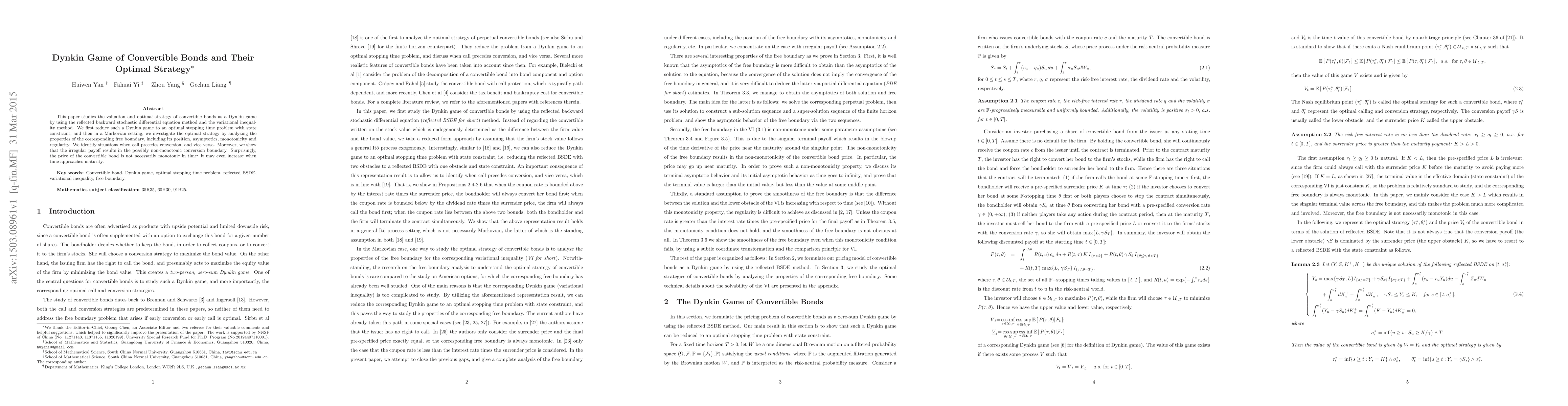This paper evaluates convertible bonds as a Dynkin game, employing reflected backward stochastic differential equations and variational inequalities to determine optimal strategies. It reveals non-monotonic behaviors in the conversion boundary and convertible bond prices, showing that prices can increase as maturity approaches.