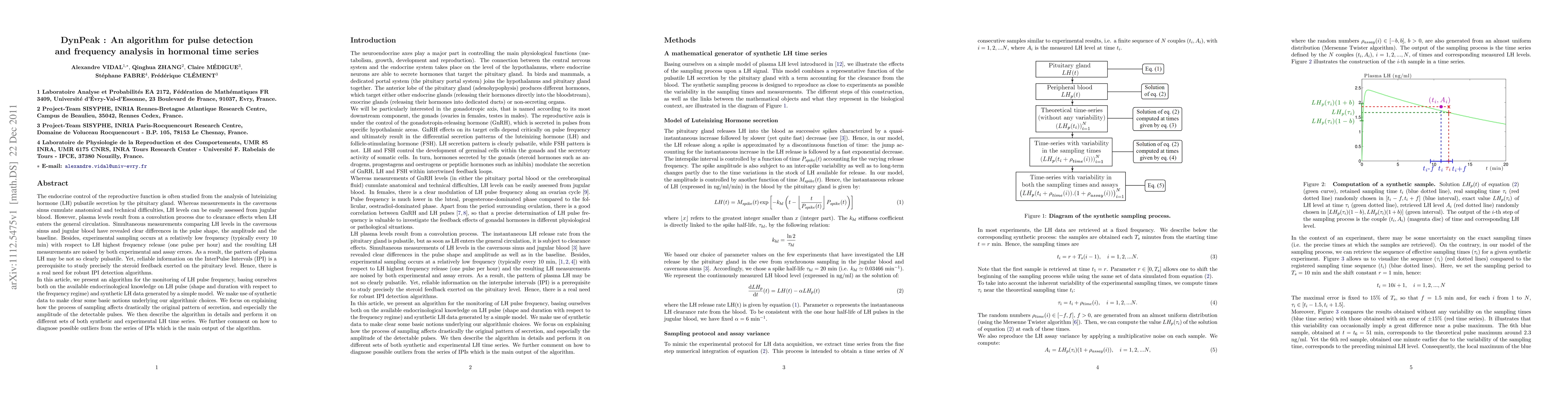 A new algorithm called DynPeak detects pulses in hormonal time series data, such as luteinizing hormone (LH) levels, and analyzes their frequency to study reproductive function.