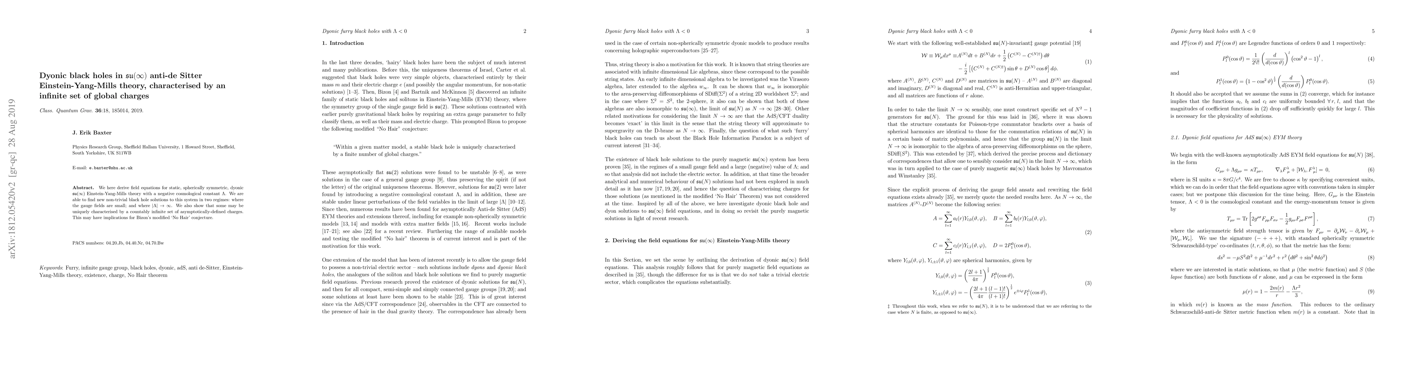This paper explores static, spherically symmetric dyonic black holes in $\mathfrak{su}(\infty)$ Einstein-Yang-Mills theory with a negative cosmological constant, revealing solutions characterized by an infinite set of global charges, potentially challenging Bizon's modified `No Hair' theorem.