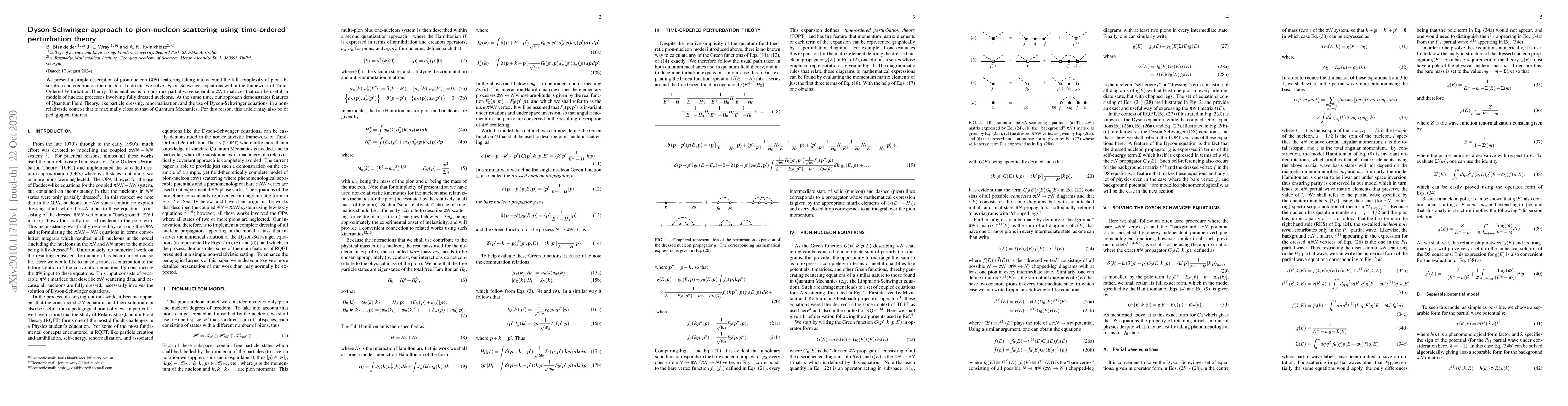 This paper employs Dyson-Schwinger equations within Time-Ordered Perturbation Theory to describe pion-nucleon scattering, capturing complex pion absorption and creation processes. The approach offers insights into Quantum Field Theory features in a non-relativistic context, useful for nuclear models and pedagogical purposes.