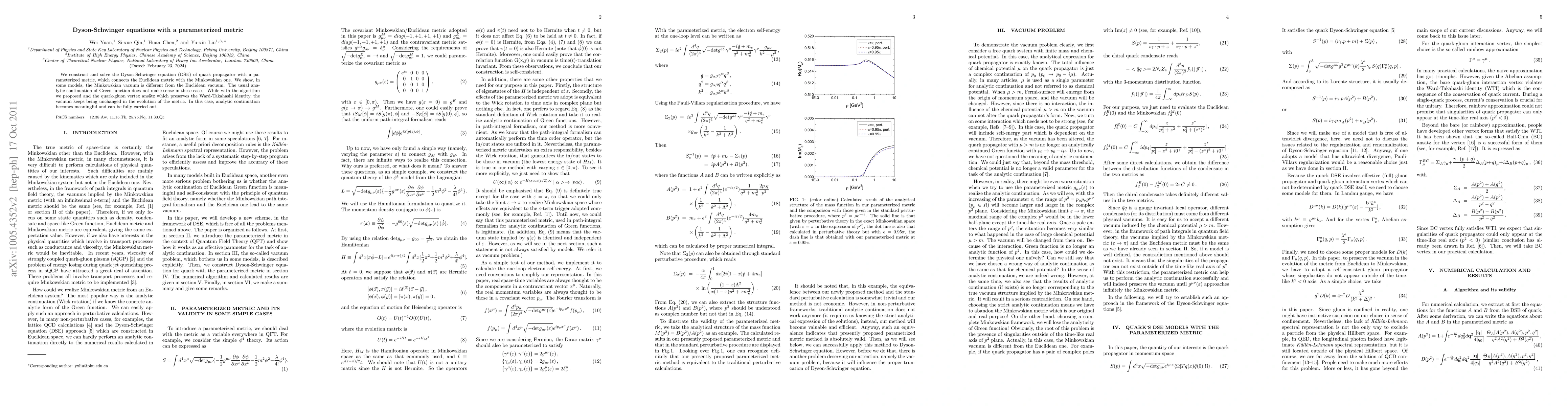 We construct and solve the Dyson-Schwinger equation (DSE) of quark propagator with a parameterized metric, which connects the Euclidean metric with the Minkowskian one. We show, in some models, the Minkowskian vacuum is different from the Euclidean vacuum. The usual analytic continuation of Green function does not make sense in these cases. While with the algorithm we proposed and the quark-gluon vertex ansatz which preserves the Ward-Takahashi identity, the vacuum keeps being unchanged in the evolution of the metric. In this case, analytic continuation becomes meaningful and can be fully carried out.