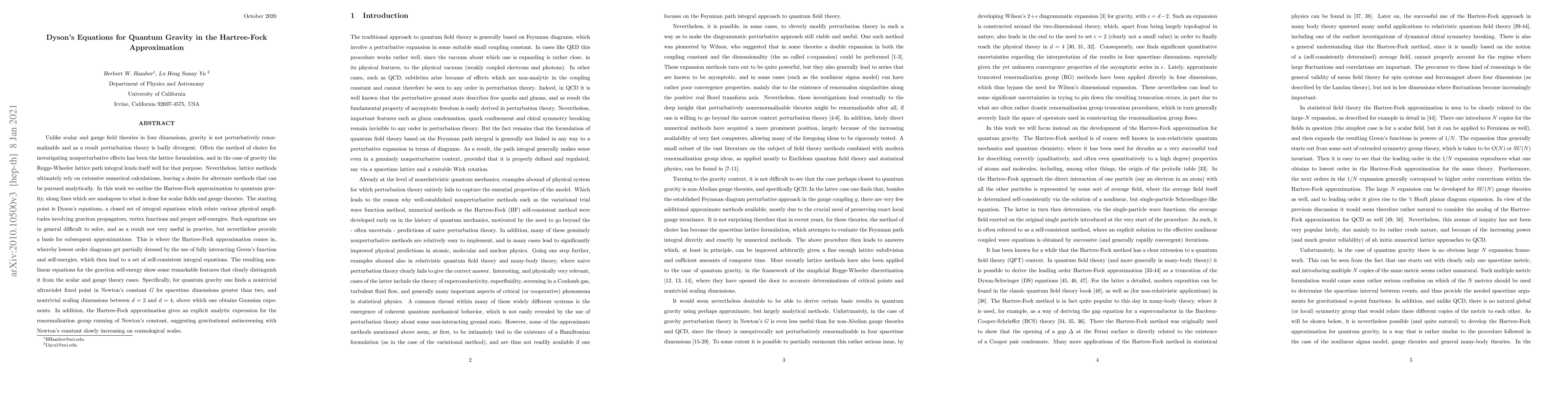 This paper explores the Hartree-Fock approximation for quantum gravity using Dyson's equations, providing an analytical approach to nonperturbative effects. It reveals a nontrivial ultraviolet fixed point in Newton's constant G for dimensions greater than two, and suggests gravitational antiscreening with G slowly increasing on cosmological scales.