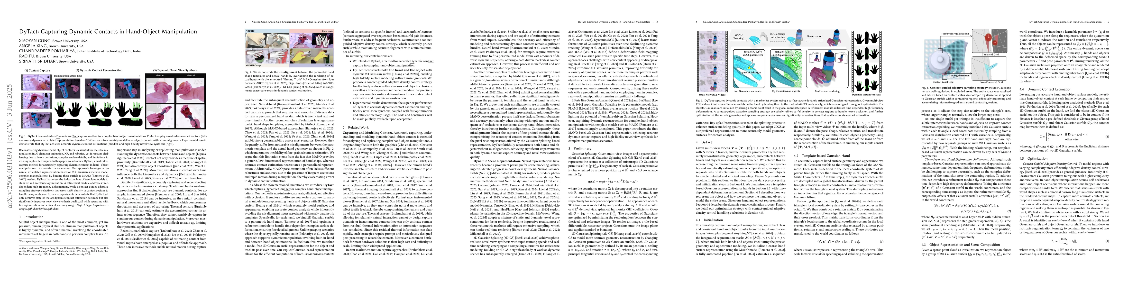 The research introduces DyTact, a markerless capture method for dynamic hand-object contacts using 2D Gaussian surfels bound to MANO meshes, with a refinement module for high-frequency deformations and adaptive sampling for handling occlusions.
