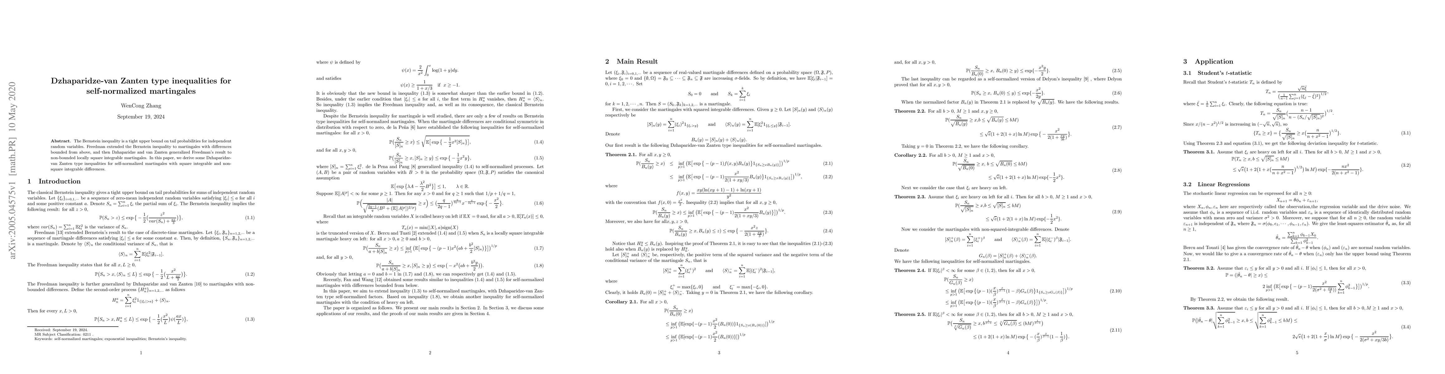 This paper derives Dzhaparidze-van Zanten type inequalities for self-normalized martingales, extending previous results to cover both square integrable and non-square integrable differences. The study builds on Bernstein's inequality and its extensions for martingales.