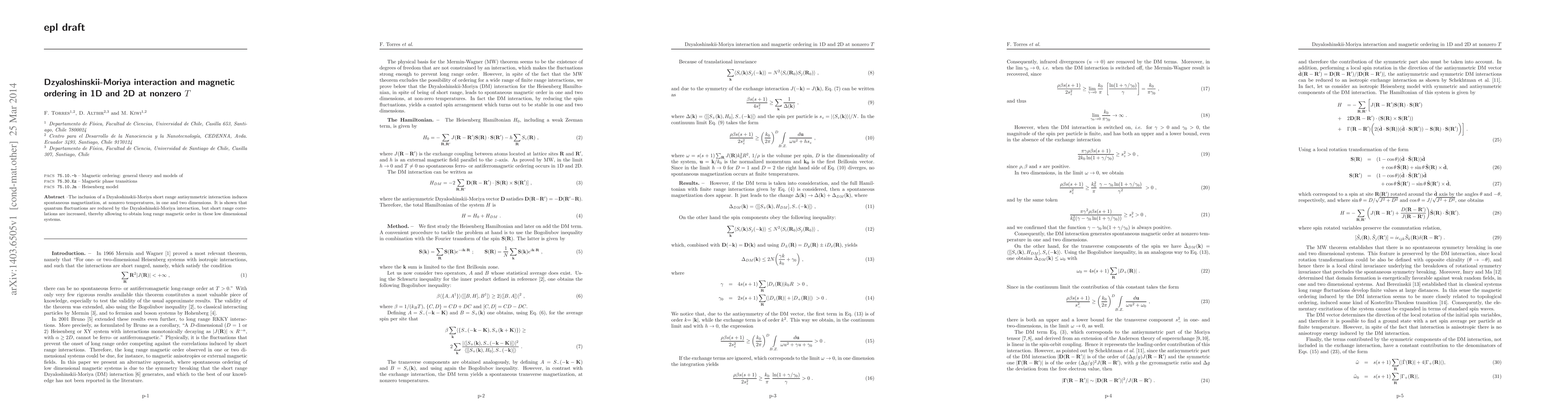 Summary: This study demonstrates that Dzyaloshinskii-Moriya interactions induce spontaneous magnetization in 1D and 2D systems at nonzero temperatures, balancing reduced quantum fluctuations with enhanced short-range correlations to achieve long-range magnetic order.
