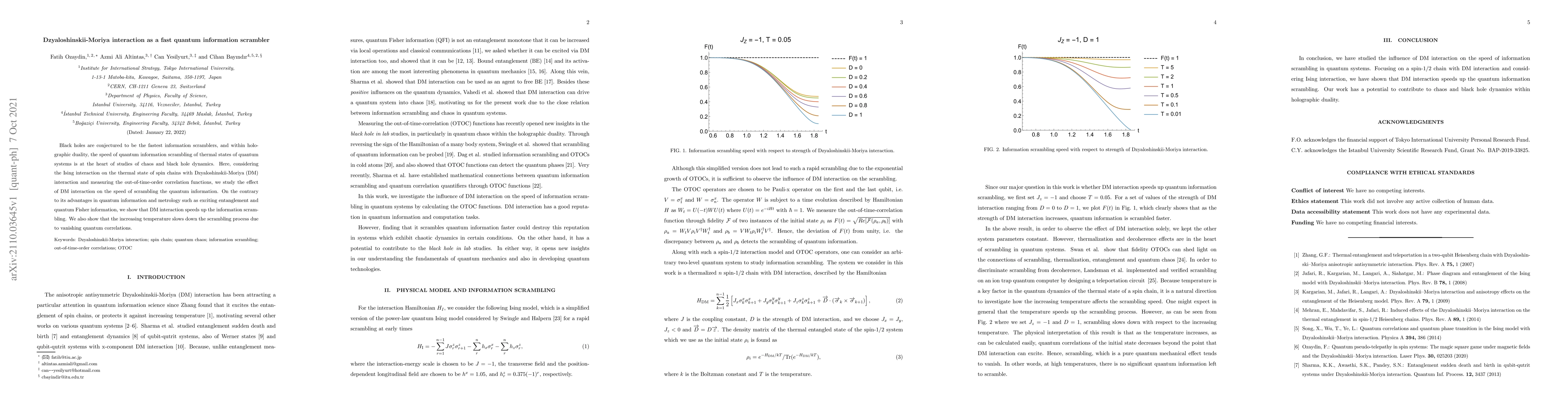 Black holes are conjectured to be the fastest information scramblers, and within holographic duality, the speed of quantum information scrambling of thermal states of quantum systems is at the heart of studies of chaos and black hole dynamics. Here, considering the Ising interaction on the thermal state of spin chains with Dzyaloshinskii-Moriya (DM) interaction and measuring the out-of-time-order correlation functions, we study the effect of DM interaction on the speed of scrambling the quantum information. On the contrary to its advantages in quantum information and metrology such as exciting entanglement and quantum Fisher information, we show that DM interaction speeds up the information scrambling. We also show that the increasing temperature slows down the scrambling process due to vanishing quantum correlations.