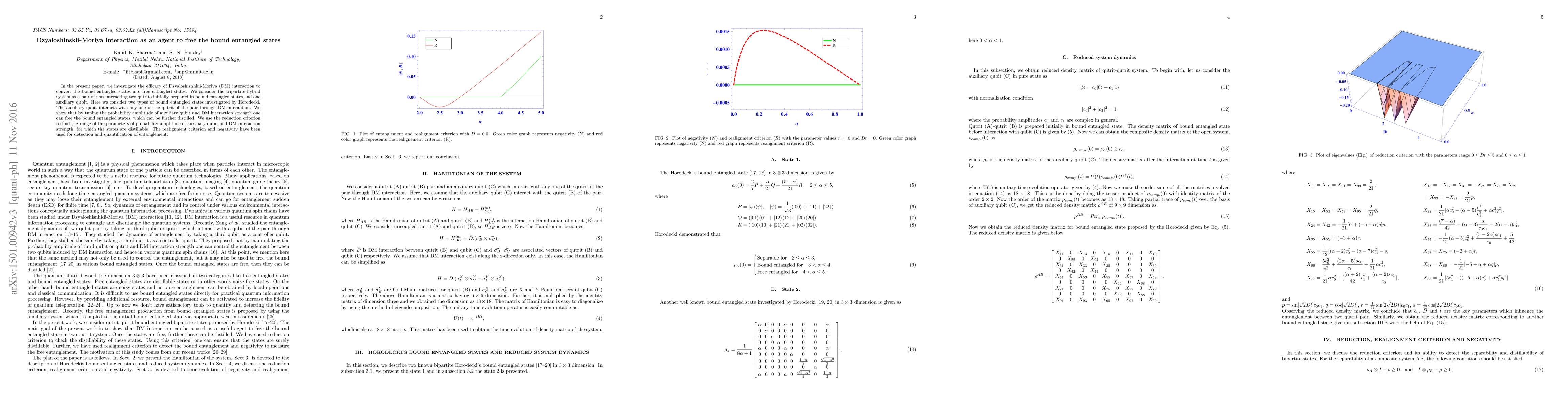 In the present article we investigate the efficacy of Dzyaloshisnhkii-Moriya (DM) interaction to convert the bound entangled states into free entangled states. Here we consider the tripartite hybrid system as a pair of non interacting two qutrits initially prepared in bound entangled states and one auxiliary qubit. The auxiliary qubit interacts with any one of the qutrit of the pair through DM interaction. It has been found that the DM interaction free the bound entangled states as time advances. In the present work we consider two types of bound entangled states investigated by Horodecki. Further we find that the frequency of free entanglement conversion is same in both the states. We also investigate the phenomenon of entanglement and distillability sudden death and their possibilities. Here the realignment criteria and negativity have been used for detection and quantification of entanglement.