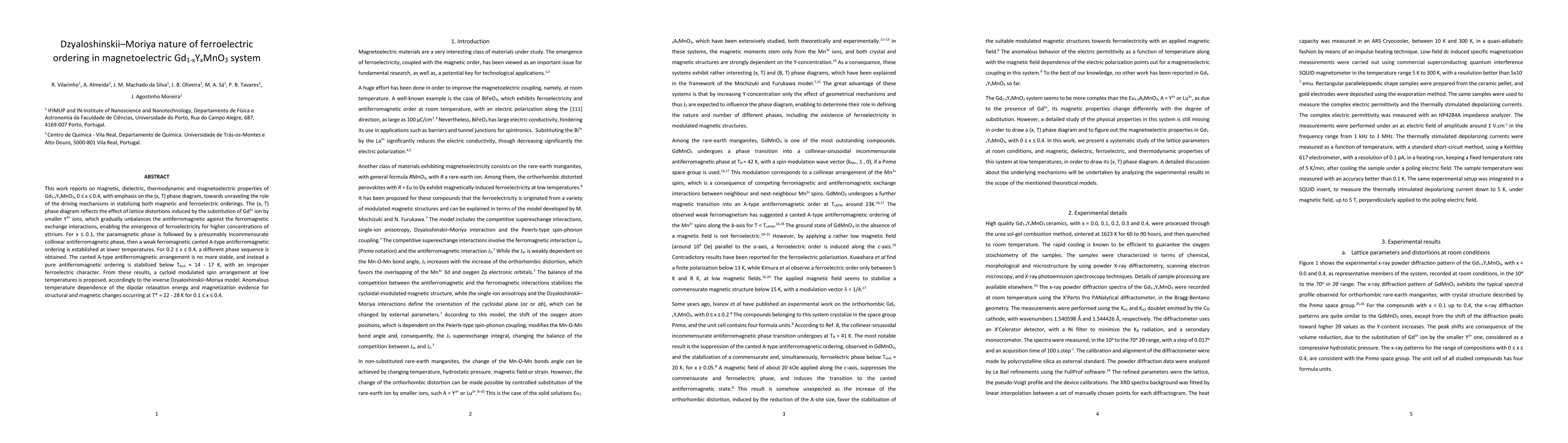 This paper explores the magnetic, dielectric, and magnetoelectric properties of Gd$_{1-x}$Y$_{x}$MnO$_{3}$ to understand the mechanisms stabilizing ferroelectricity and magnetic ordering. The study reveals that lattice distortions from Y$^{3+}$ substitution drive the emergence of ferroelectricity, proposing a cycloid spin arrangement at low temperatures consistent with the Dzyaloshinskii-Moriya model.