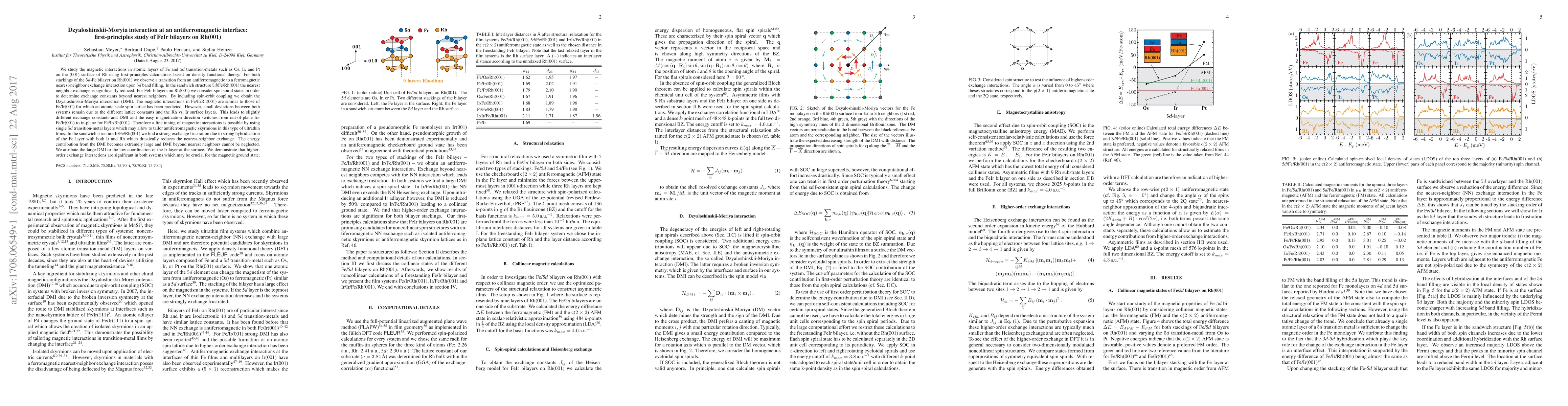 We study the magnetic interactions in atomic layers of Fe and 5d transition-metals such as Os, Ir, and Pt on the (001) surface of Rh using first-principles calculations based on density functional theory. For both stackings of the 5d-Fe bilayer on Rh(001) we observe a transition from an antiferromagnetic to a ferromagnetic nearest-neighbor exchange interaction upon 5d band filling. In the sandwich structure 5d/Fe/Rh(001) the nearest neighbor exchange is significantly reduced. For FeIr bilayers on Rh(001) we consider spin spiral states in order to determine exchange constants beyond nearest neighbors. By including spin-orbit coupling we obtain the Dzyaloshinskii-Moriya interaction (DMI). The magnetic interactions in Fe/Ir/Rh(001) are similar to those of Fe/Ir(001) for which an atomic scale spin lattice has been predicted. However, small deviations between both systems remain due to the different lattice constants and the Rh vs. Ir surface layers. This leads to slightly different exchange constants and DMI and the easy magnetization direction switches from out-of-plane for Fe/Ir(001) to in-plane for Fe/Ir/Rh(001). Therefore a fine tuning of magnetic interactions is possible by using single 5d transition-metal layers which may allow to tailor antiferromagnetic skyrmions in this type of ultrathin films. In the sandwich structure Ir/Fe/Rh(001) we find a strong exchange frustration due to strong hybridization of the Fe layer with both Ir and Rh which drastically reduces the nearest-neighbor exchange. The energy contribution from the DMI becomes extremely large and DMI beyond nearest neighbors cannot be neglected. We attribute the large DMI to the low coordination of the Ir layer at the surface. We demonstrate that higher- order exchange interactions are significant in both systems which may be crucial for the magnetic ground state.