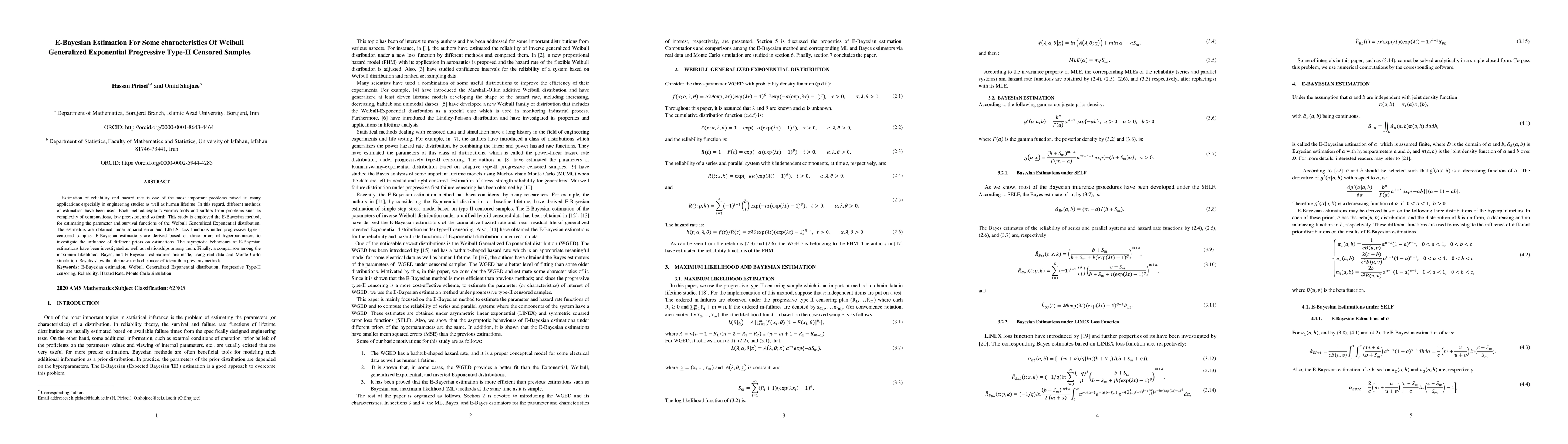 Estimation of reliability and hazard rate is one of the most important problems raised in many applications especially in engineering studies as well as human lifetime. In this regard, different methods of estimation have been used. Each method exploits various tools and suffers from problems such as complexity of computations, low precision, and so forth. This study is employed the E-Bayesian method, for estimating the parameter and survival functions of the Weibull Generalized Exponential distribution. The estimators are obtained under squared error and LINEX loss functions under progressive type-II censored samples. E-Bayesian estimations are derived based on three priors of hyperparameters to investigate the influence of different priors on estimations. The asymptotic behaviours of E-Bayesian estimations have been investigated as well as relationships among them. Finally, a comparison among the maximum likelihood, Bayes, and E-Bayesian estimations are made, using real data and Monte Carlo simulation. Results show that the new method is more efficient than previous methods.