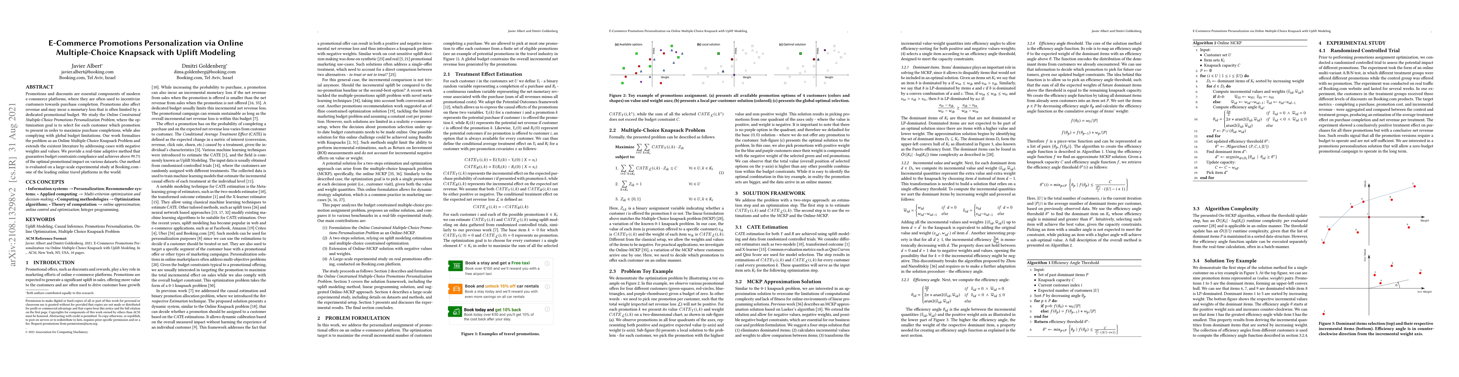 This paper addresses the optimization of personalized e-commerce promotions within a constrained budget, framing it as an Online Multiple-Choice Knapsack Problem. It introduces a real-time adaptive method that ensures budget compliance while achieving nearly optimal promotional impact, validated through a large-scale experiment on a leading online travel platform.