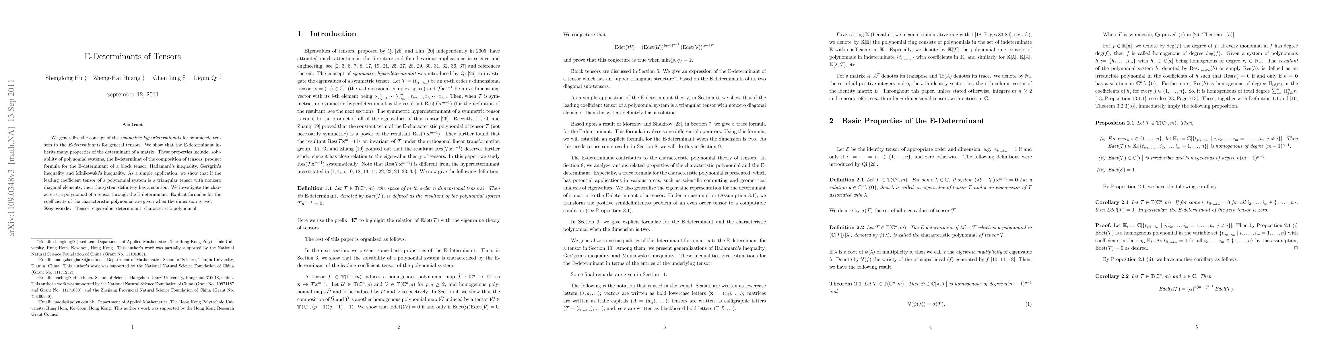 This paper generalizes the concept of symmetric hyperdeterminants to E-determinants for general tensors, demonstrating that E-determinants retain many properties of matrix determinants, including solvability of polynomial systems and various inequalities. An application shows that triangular tensors with nonzero diagonal elements guarantee solutions for polynomial systems.