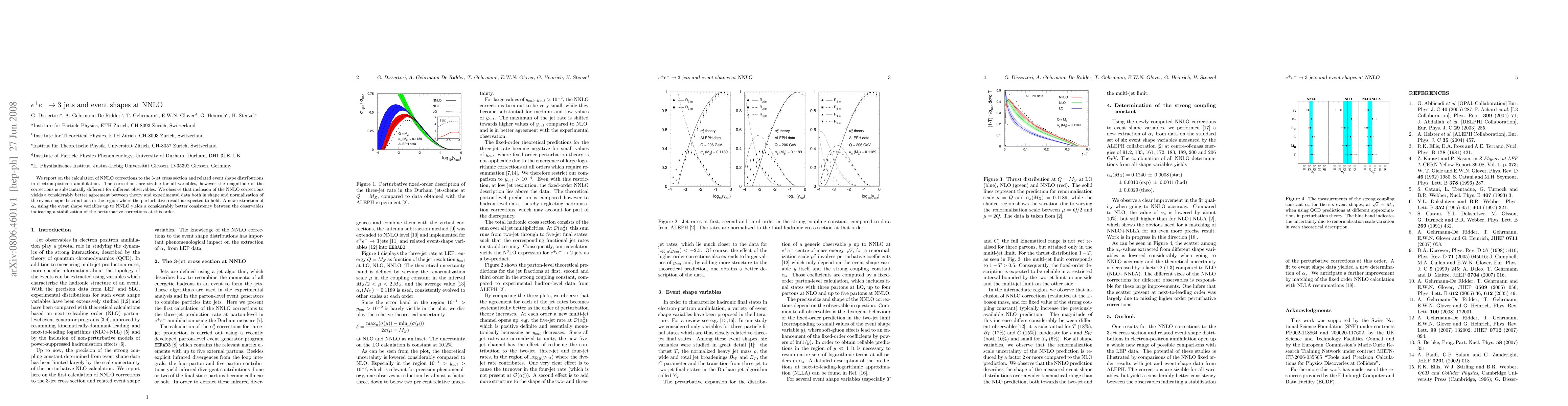 Researchers calculate NNLO corrections to 3-jet cross section and event shape distributions in electron-positron annihilation, improving agreement with experimental data and stabilizing perturbative corrections.
