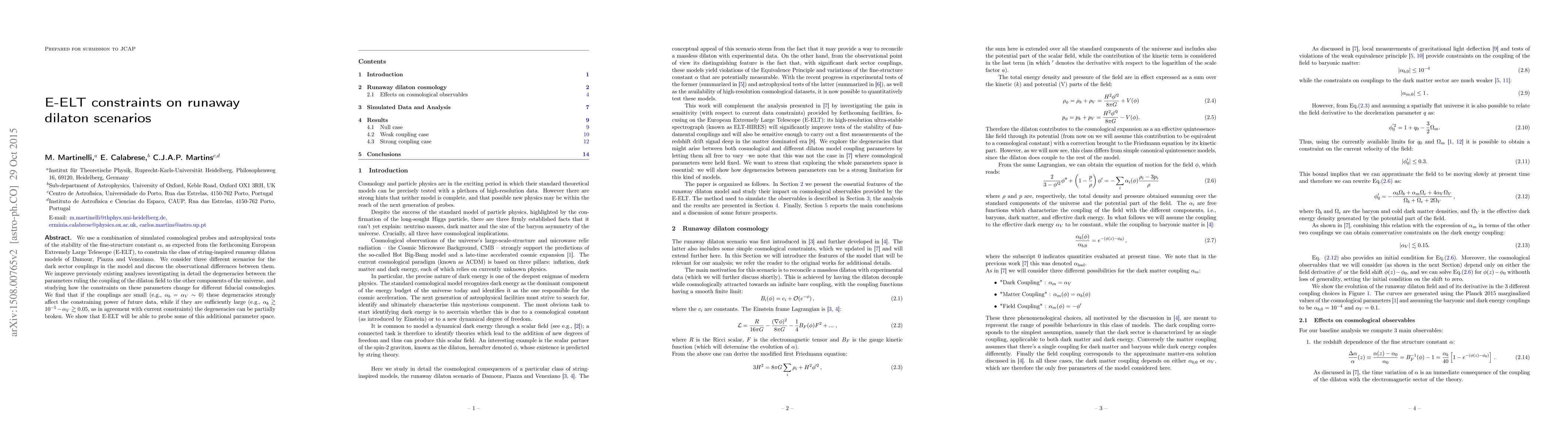 We use a combination of simulated cosmological probes and astrophysical tests of the stability of the fine-structure constant $\alpha$, as expected from the forthcoming European Extremely Large Telescope (E-ELT), to constrain the class of string-inspired runaway dilaton models of Damour, Piazza and Veneziano. We consider three different scenarios for the dark sector couplings in the model and discuss the observational differences between them. We improve previously existing analyses investigating in detail the degeneracies between the parameters ruling the coupling of the dilaton field to the other components of the universe, and studying how the constraints on these parameters change for different fiducial cosmologies. We find that if the couplings are small (e.g., $\alpha_b=\alpha_V\sim0$) these degeneracies strongly affect the constraining power of future data, while if they are sufficiently large (e.g., $\alpha_b\gtrsim10^{-5}-\alpha_V\gtrsim0.05$, as in agreement with current constraints) the degeneracies can be partially broken. We show that E-ELT will be able to probe some of this additional parameter space.
