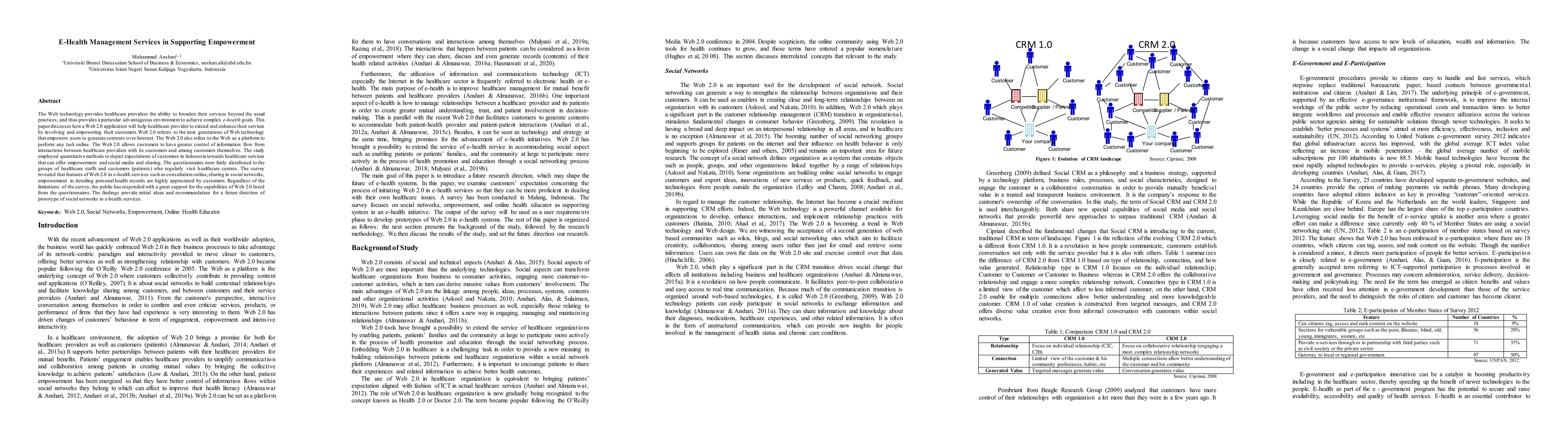 The Web technology provides healthcare providers the ability to broaden their services beyond the usual practices, and thus provides a particular advantageous environment to achieve complex e-health goals. This paper discusses how a Web 2.0 application will help healthcare provider to extend and enhance their services by involving and empowering their customers.Web 2.0 referes to the next generations of Web technology that empowers users to generate contents over Internet. The Web 2.0 also refers to the Web as a platform to perform any task online. The Web 2.0 allows customers to have greater control of information flow from interactions between healthcare providers with its customers and among customers themselves. The study employed quantitative methods to depict expectations of customers in Indonesia towards healthcare services that can offer empowerment and social media and sharing. The questionnaires were fairly distributed to the groups of healthcare staffs and customers (patients) who regularly visit healthcare centres. The survey revealed that features of Web 2.0 in e-health services such as consultation online, sharing in social networks, empowerment in detailing personal health records are highly appreciated by customers. Regardless of the limitations of the survey, the public has responded with a great support for the capabilities of Web 2.0 listed from the questionnaires. The findings provide initial ideas and recommendation for a future direction of prototype of social networks in e-health services.