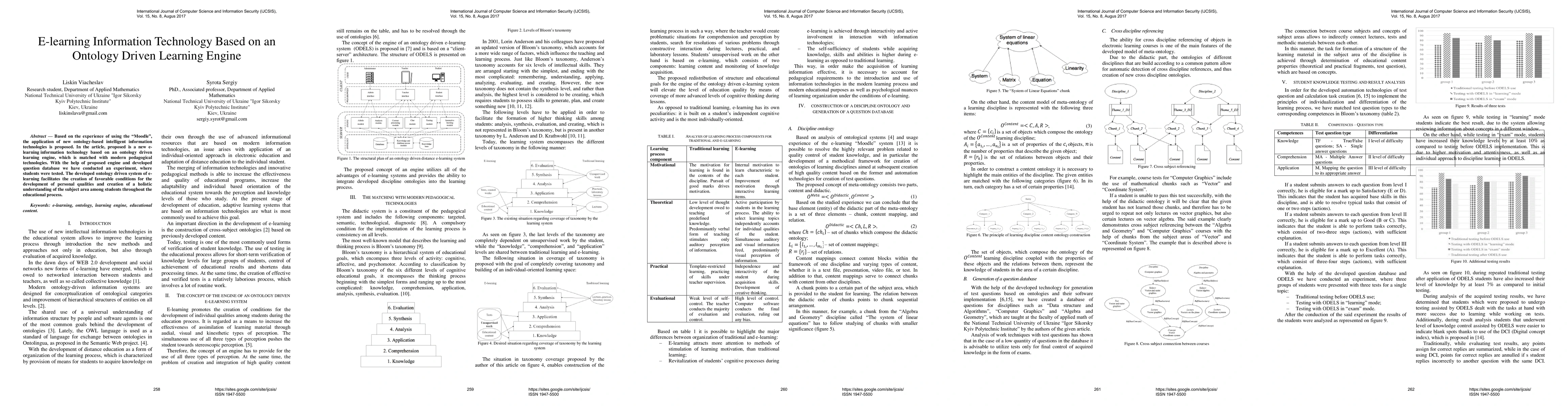 This paper proposes a new e-learning information technology based on an ontology-driven learning engine, which aligns with modern pedagogical methods. Experimental results show that the system enhances personal development and holistic subject understanding among students.