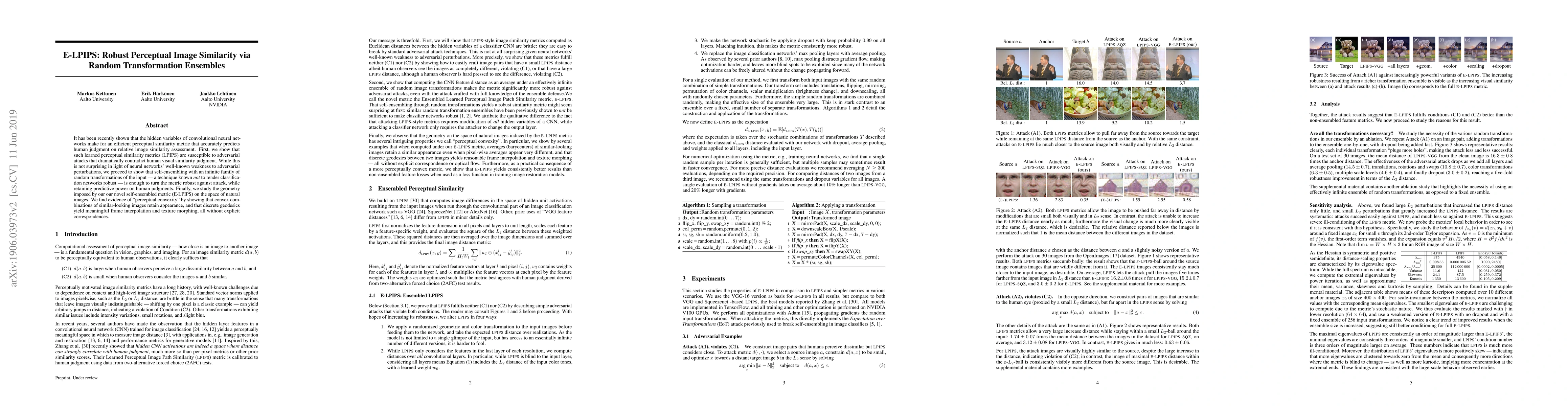This paper introduces E-LPIPS, a robust perceptual image similarity metric that enhances the original LPIPS by employing self-ensembling through random transformations. The enhanced metric maintains its predictive power for human visual similarity judgments while becoming resilient to adversarial attacks.