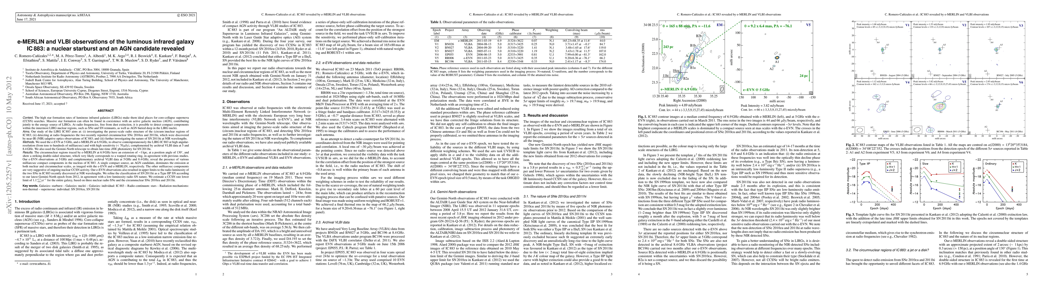 The high star formation rates of luminous infrared galaxies (LIRGs) make them ideal places for core-collapse supernova (CCSN) searches. At radio frequencies, free from dust extinction, it is possible to detect compact components within the innermost LIRG nuclear regions, such as SNe and SN remnants, as well as AGN buried deep in the LIRG nuclei. We studied the LIRG IC883 aiming at: (i) investigating its (circum-)nuclear regions using the e-EVN at 5GHz, and e-MERLIN at 6.9GHz, complemented by archival VLBI data; (ii) detecting at radio frequencies the two recently reported circumnuclear SNe 2010cu and 2011hi, which were discovered by near-IR (NIR) adaptive optics observations of IC883; and (iii) further investigating the nature of SN2011hi at NIR by means of observations with Gemini-North. The circumnuclear regions traced by e-MERLIN at 6.9GHz have an extension of ~1kpc, and show a striking double-sided structure, which very likely corresponds to a warped rotating ring, in agreement with previous studies. Our e-EVN observations at 5GHz and complementary archival VLBI data at 5GHz and 8.4GHz, reveal the presence of various milliarcsec compact components in the nucleus of IC883. A single compact source, an AGN candidate, dominates the emission at both nuclear and circumnuclear scales, as imaged with the e-EVN and e-MERLIN, respectively. The other milliarcsec components are very suggestive of ongoing nuclear CCSN activity. Our e-EVN observations also resulted in upper limits to the radio luminosity of the two SNe in IC883 recently discovered at NIR. We refine the classification of SN2011hi as a Type IIP SN according to our latest Gemini-North epoch from 2012, in agreement with a low-luminosity radio SN nature. We estimate a CCSN rate lower limit of 1.1_{-0.6}^{+1.3} yr^{-1} for the entire galaxy, based on three nuclear radio SNe and the circumnuclear SNe 2010cu and 2011hi. (abridged)
