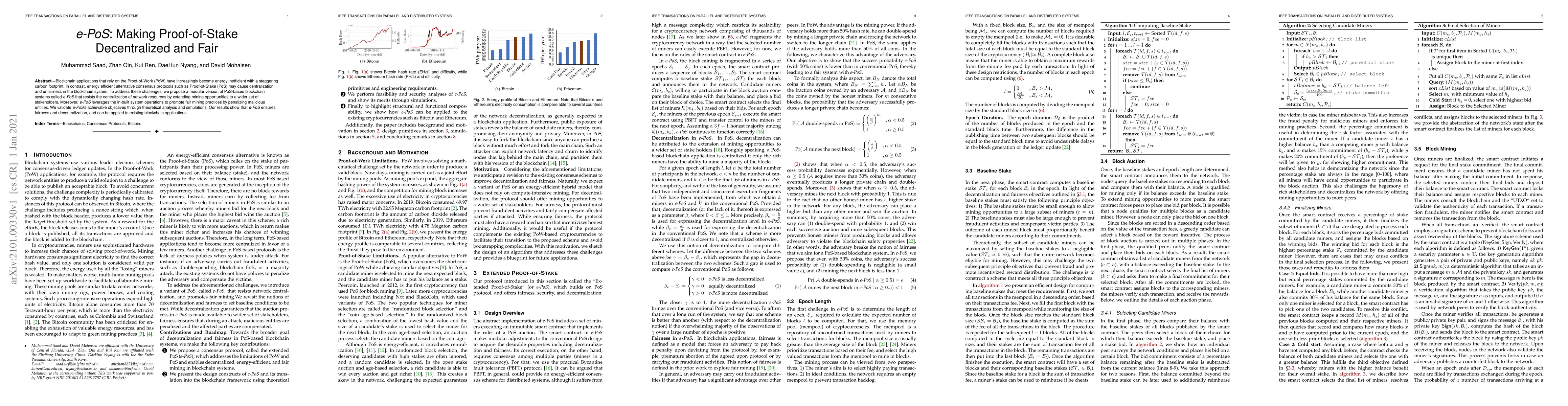 The paper proposes e-PoS, an energy-efficient Proof-of-Stake blockchain system designed to resist centralization and promote fairness by extending mining opportunities to a broader set of stakeholders. Theoretical analysis and simulations demonstrate e-PoS's effectiveness in achieving decentralization and fairness.