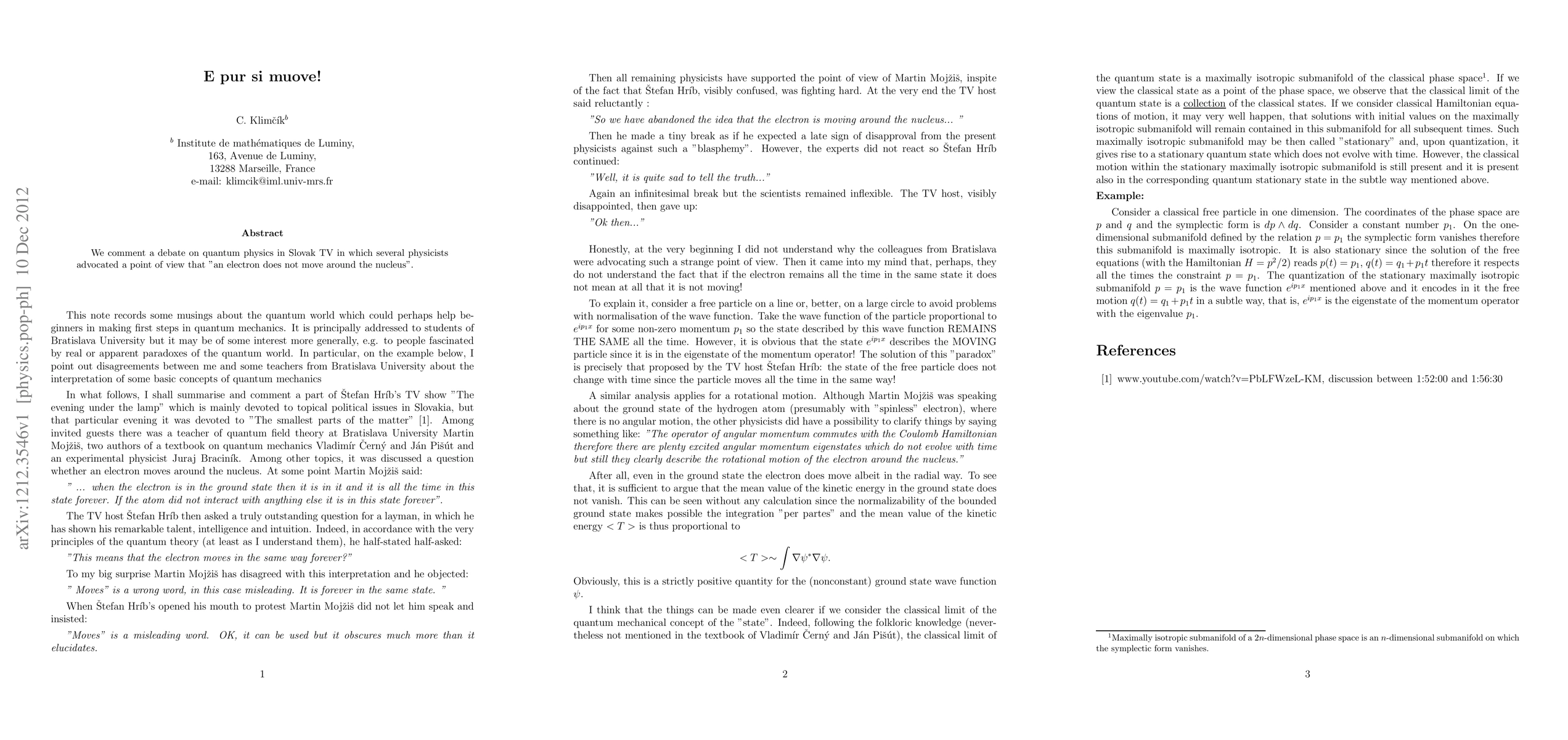 We comment a debate on quantum physics in Slovak TV in which several physicists advocated a point of view that "an electron does not move around the nucleus".