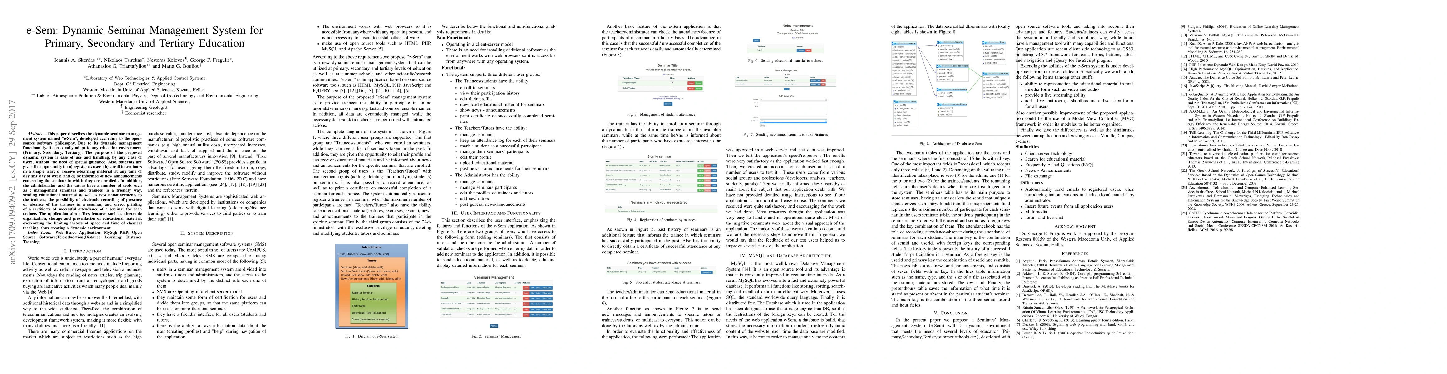 The paper introduces 'e-Sem', a dynamic open-source seminar management system adaptable to primary, secondary, and tertiary education. It aims to simplify seminar management and provide students with easy access to e-learning materials and announcements, while offering administrators and tutors tools for efficient seminar and trainee management.