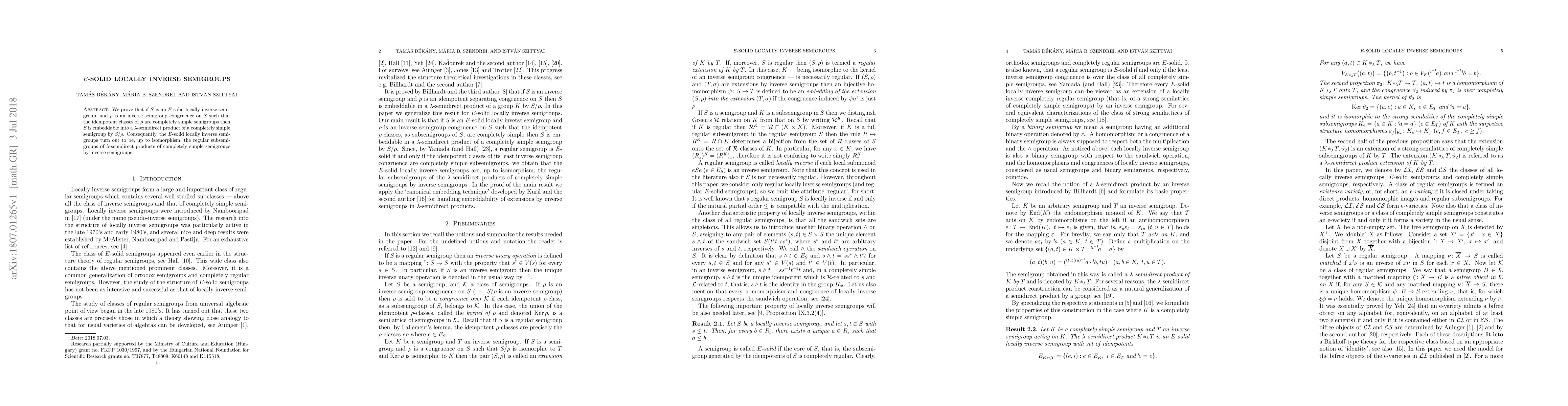 This paper demonstrates that an $E$-solid locally inverse semigroup $S$ can be embedded into a $\lambda$-semidirect product when its $\rho$-congruence's idempotent classes are completely simple, concluding that such semigroups are isomorphic to regular subsemigroups of these products.