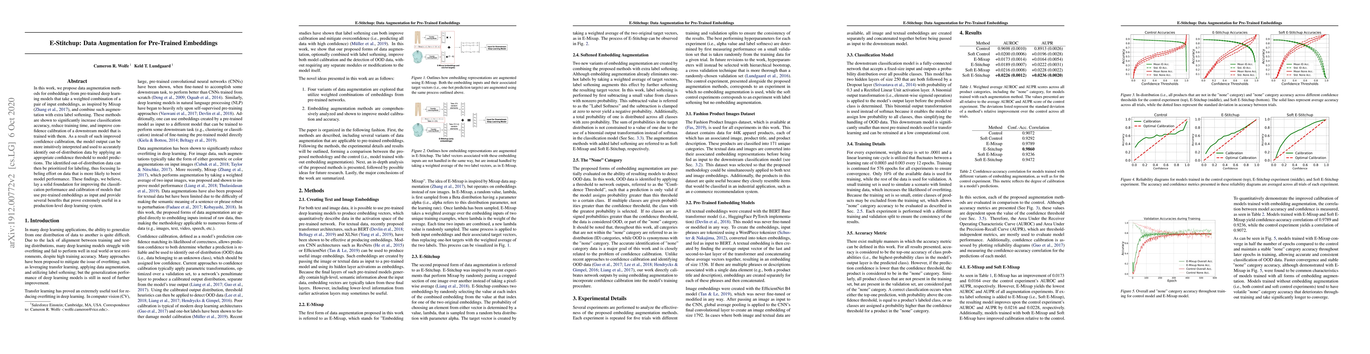This paper introduces data augmentation techniques for pre-trained embeddings, combining Mixup-inspired weighted embeddings with label softening, which enhance classification accuracy, reduce training time, and improve model confidence calibration. The improved calibration aids in identifying and prioritizing out-of-distribution data for labeling, ultimately boosting model performance.