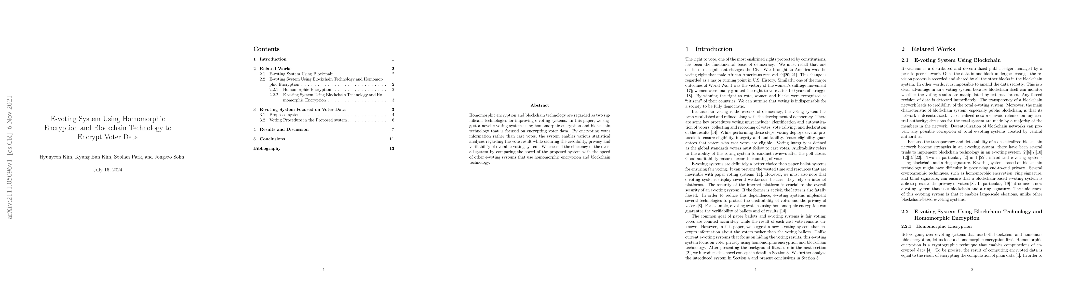 This paper proposes an innovative e-voting system leveraging homomorphic encryption and blockchain technology to encrypt voter data, ensuring privacy and enabling statistical analyses without compromising vote integrity. The efficiency of the proposed system is evaluated by comparing its speed with other e-voting systems using similar technologies.