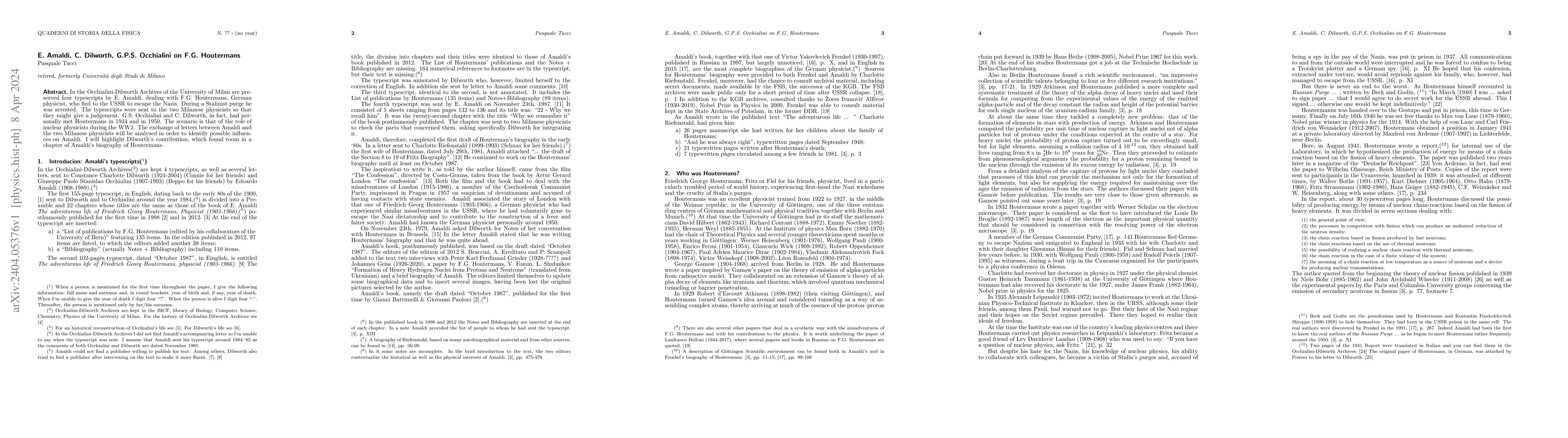This paper examines typescripts by E. Amaldi assessing the work of German physicist F.G. Houtermans, who fled to the USSR during WWII. It highlights the influence of C. Dilworth's insights on Amaldi, particularly noting Dilworth's contributions included in Amaldi's biography of Houtermans.