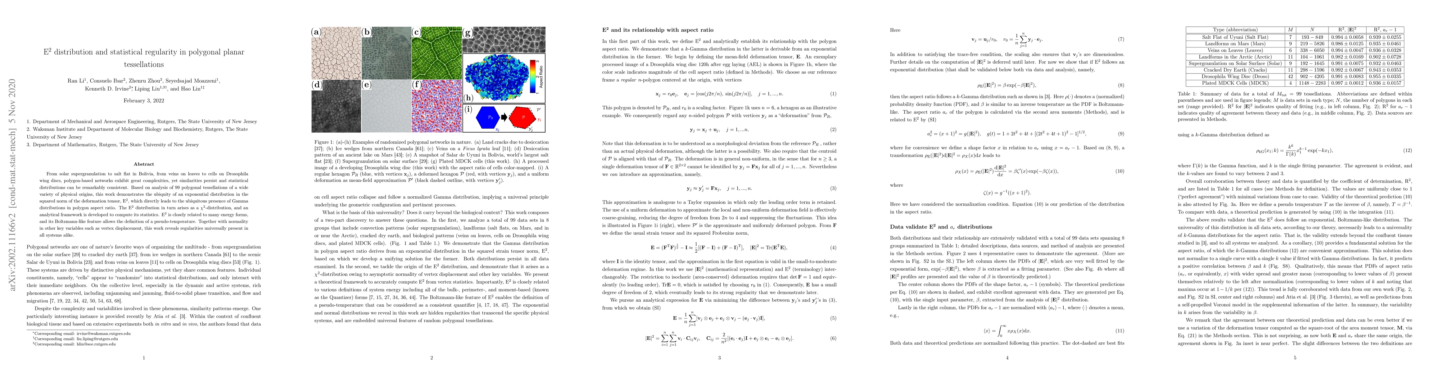 Researchers found that polygonal planar tessellations, appearing in various natural systems, exhibit an exponential distribution in their deformation tensor squared norm (E2), leading to a universal presence of Gamma distributions in aspect ratios.