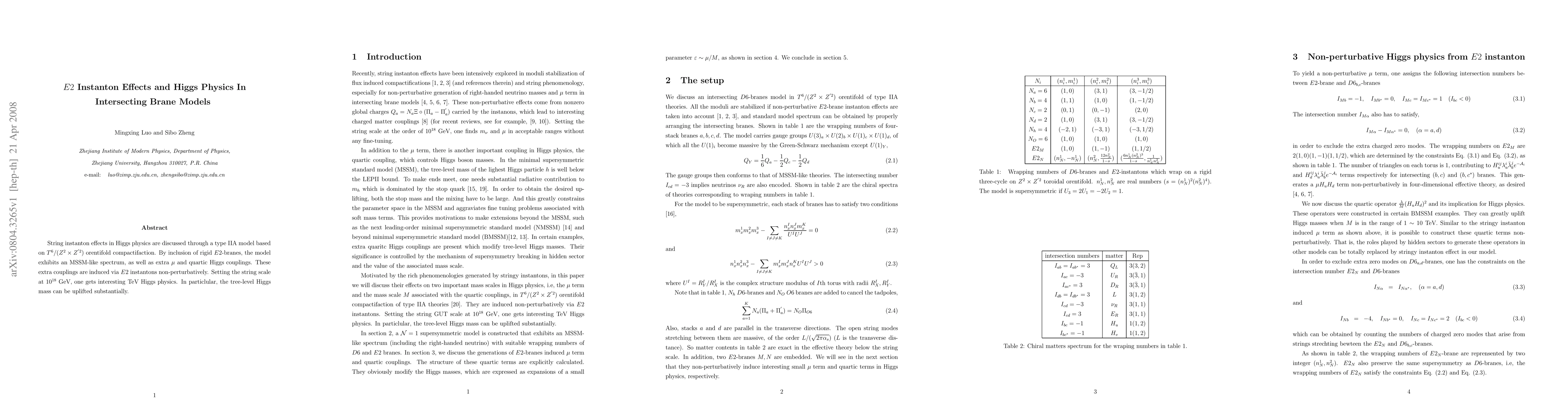 String instanton effects in Higgs physics are discussed through a type IIA model based on T^{6}/(Z^{2}\times Z^{'2}) orentifold compactifaction. By inclusion of rigid E2-branes, the model exhibits a MSSM-like spectrum, as well as extra mu and quartic Higgs couplings. These extra couplings are induced via E2 instantons non-perturbatively. Setting the string scale at 10^{18} GeV, one gets interesting TeV Higgs physics. In particlular, the tree-level Higgs mass can be uplifted substantially.