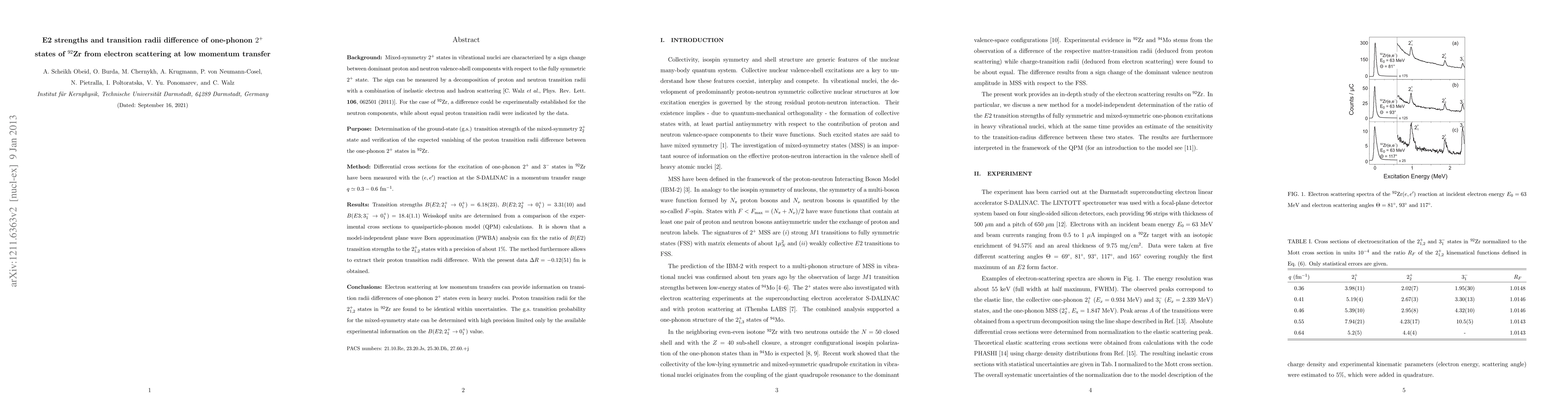 This research measures differential cross sections for exciting one-phonon 2+ and 3- states in 92Zr using electron scattering at low momentum transfer, determining transition strengths and extracting proton transition radii differences. The findings suggest electron scattering can provide precise information on transition radii differences in heavy nuclei, indicating identical proton transition radii for the 2+ states in 92Zr.