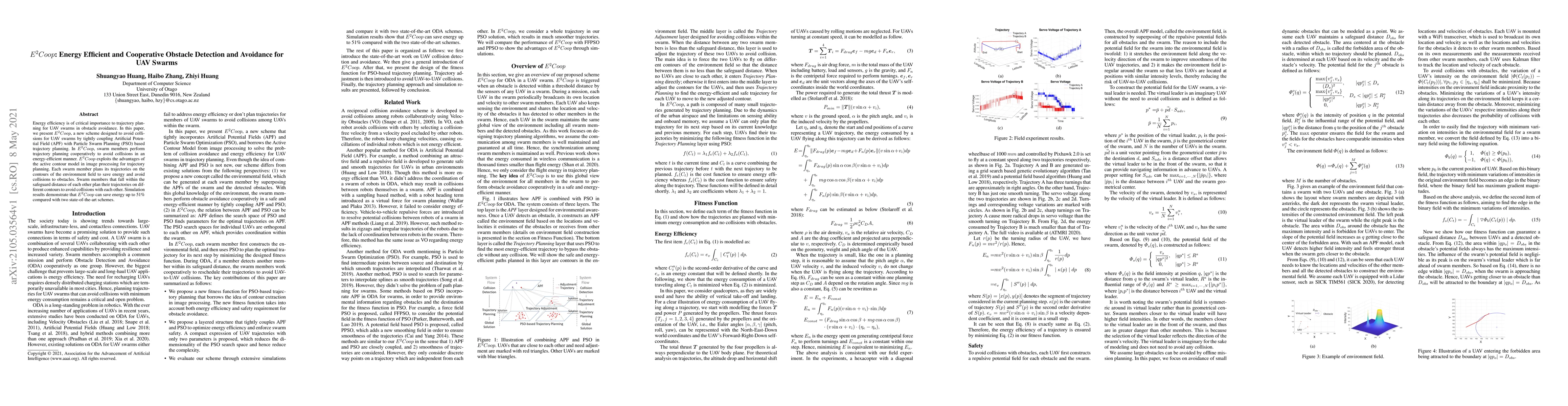 $E^2Coop$ integrates Artificial Potential Field and Particle Swarm Planning for energy-efficient UAV swarm obstacle avoidance, leveraging active contour models to optimize trajectories and save up to 51% energy compared to existing methods.