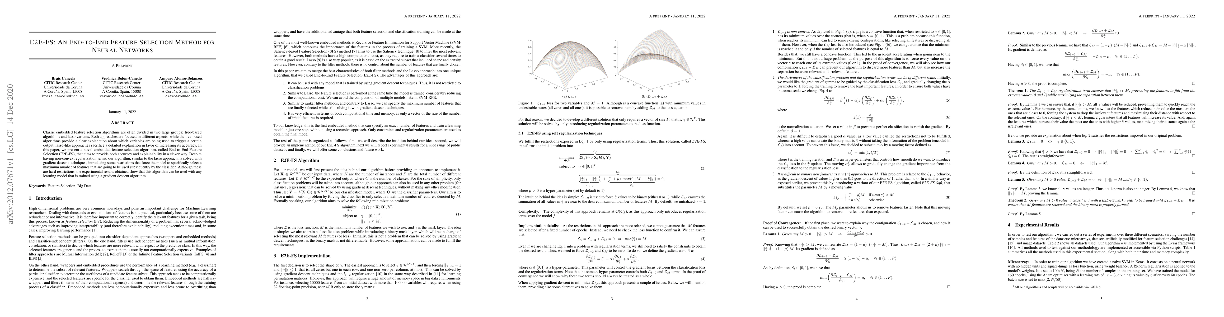 The paper introduces E2E-FS, a novel embedded feature selection method that balances accuracy and explainability by combining non-convex regularization with gradient descent, allowing a maximum number of features to be selected for use in neural networks. Experimental results demonstrate its applicability to various gradient-based learning models.