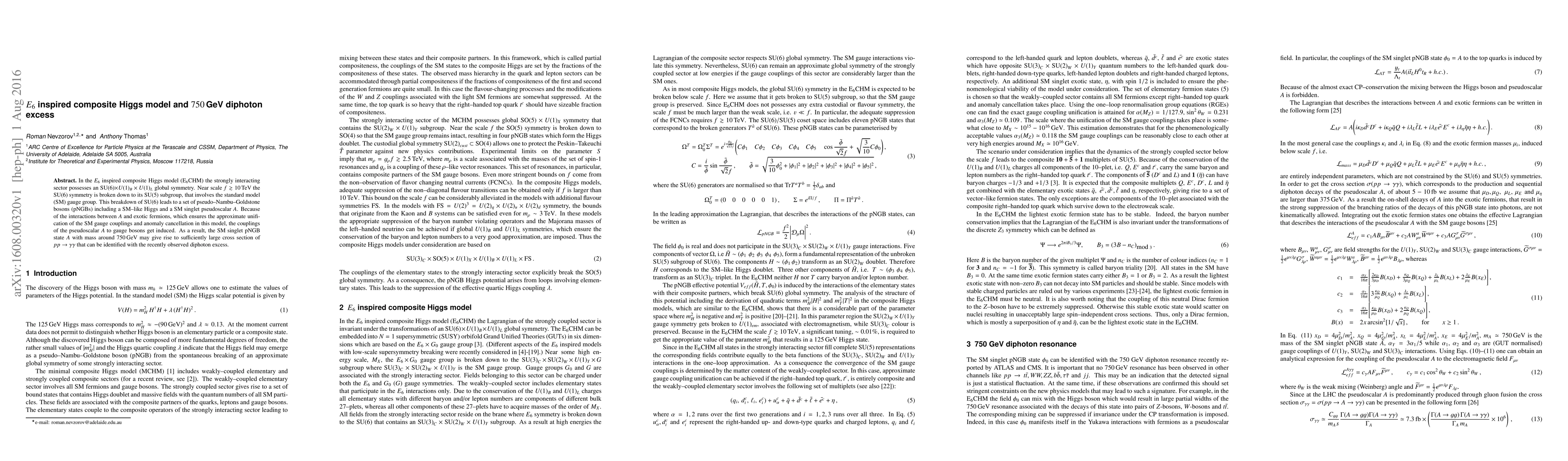 This research proposes an E6 inspired composite Higgs model where a 750 GeV pseudoscalar state, A, arises from symmetry breaking, which could explain the observed diphoton excess through its induced couplings to gauge bosons. The model ensures gauge coupling unification and anomaly cancellation via interactions with exotic fermions.