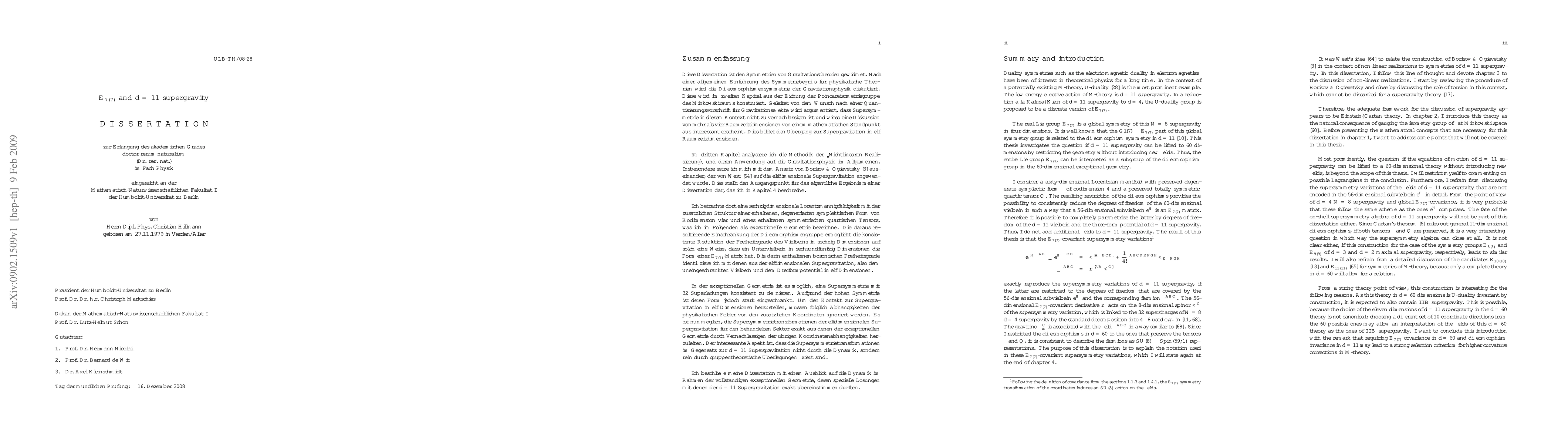 This thesis firstly investigates whether D=11 supergravity can be lifted to a higher dimensional theory without introducing additional bosonic fields by interpreting the E(7(7))-symmetry of N=8 d=4 supergravity as part of a coordinate symmetry acting in a 60 dimensional restricted or exceptional geometry. It is proved that the supersymmetry variations of D=11 supergravity, truncated to d=7, can be reproduced from this exceptional geometry in the expected manner. Secondly, Borisov's and Ogievetsky's procedure to construct a theory with diffeomorphism covariance from the joint non-linear realization of the affine linear subgroup of diffeomorphisms with the conformal one is reviewed in detail, which is then extended by discussing torsion in this context.
