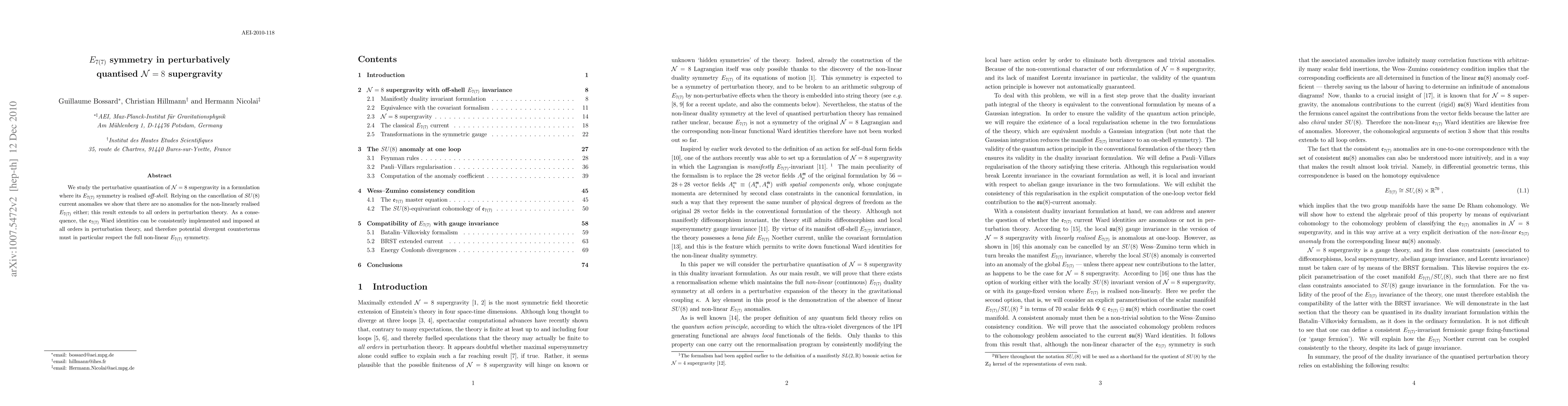 This paper investigates the perturbative quantisation of N=8 supergravity with an off-shell realisation of its E7(7) symmetry, demonstrating the absence of anomalies through SU(8) current anomaly cancellation. It concludes that the E7(7) Ward identities can be consistently applied at all perturbation theory orders, ensuring that any divergent counterterms must respect the full E7(7) symmetry.