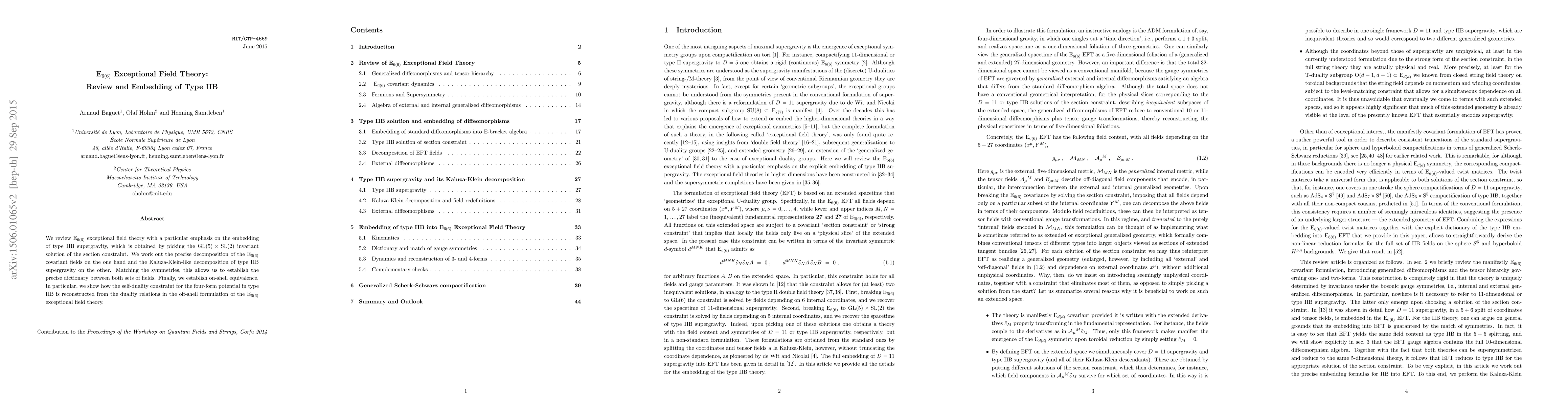 We review E$_{6(6)}$ exceptional field theory with a particular emphasis on the embedding of type IIB supergravity, which is obtained by picking the GL$(5)\times {\rm SL}(2)$ invariant solution of the section constraint. We work out the precise decomposition of the E$_{6(6)}$ covariant fields on the one hand and the Kaluza-Klein-like decomposition of type IIB supergravity on the other. Matching the symmetries, this allows us to establish the precise dictionary between both sets of fields. Finally, we establish on-shell equivalence. In particular, we show how the self-duality constraint for the four-form potential in type IIB is reconstructed from the duality relations in the off-shell formulation of the E$_{6(6)}$ exceptional field theory.