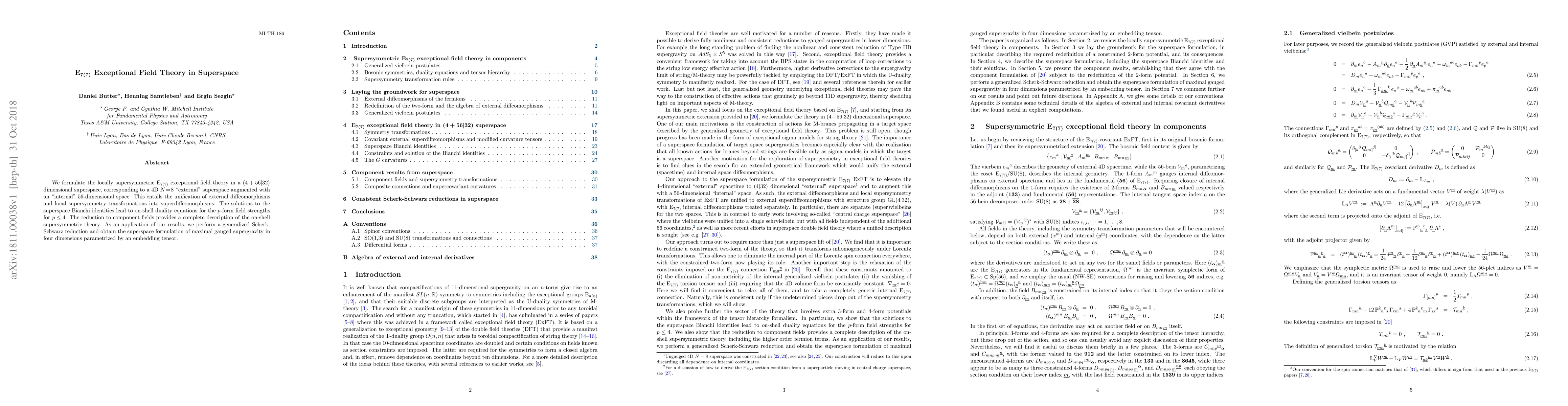 We formulate the locally supersymmetric E$_{7(7)}$ exceptional field theory in a $(4+56|32)$ dimensional superspace, corresponding to a 4D $N\!=\!8$ "external" superspace augmented with an "internal" 56-dimensional space. This entails the unification of external diffeomorphisms and local supersymmetry transformations into superdiffeomorphisms. The solutions to the superspace Bianchi identities lead to on-shell duality equations for the $p$-form field strengths for $p\leq 4$. The reduction to component fields provides a complete description of the on-shell supersymmetric theory. As an application of our results, we perform a generalized Scherk-Schwarz reduction and obtain the superspace formulation of maximal gauged supergravity in four dimensions parametrized by an embedding tensor.