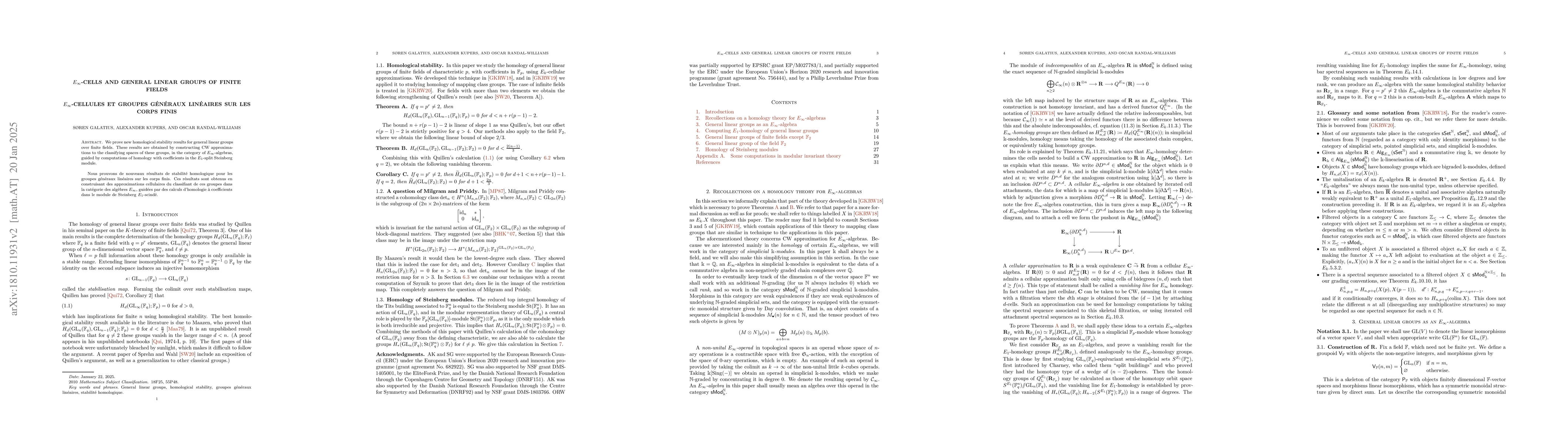 This paper establishes new homological stability results for general linear groups over finite fields, achieved through the construction of $E_\infty$-cell approximations to their classifying spaces, informed by homology computations using the $E_1$-split Steinberg module.