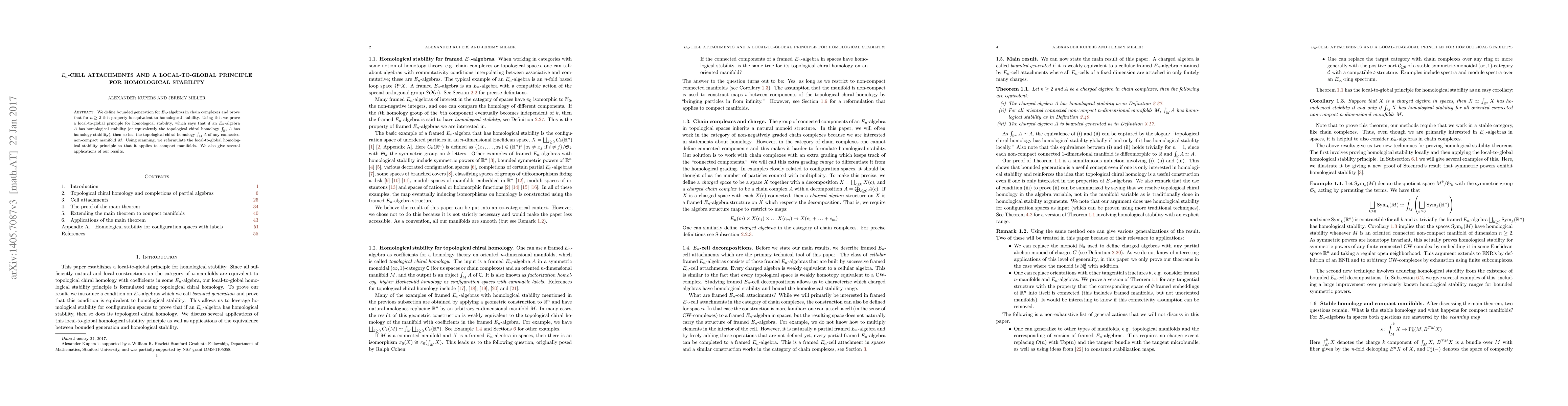 This paper defines bounded generation for $E_n$-algebras in chain complexes and establishes its equivalence to homological stability for $n \geq 2$. It proves a local-to-global principle for homological stability, extending stability to the topological chiral homology of any connected non-compact manifold, and reformulates this principle for compact manifolds as well.