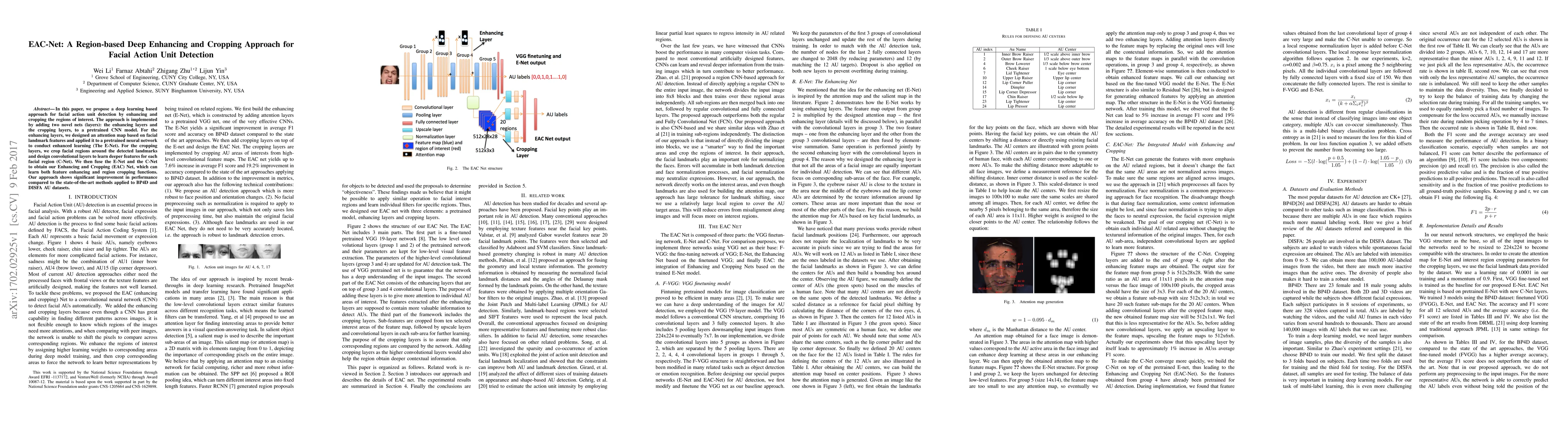 The paper proposes EAC-Net, a deep learning method for facial action unit detection that enhances and crops regions of interest using two novel networks: E-Net for feature enhancement and C-Net for region cropping. The approach shows significant performance improvements over state-of-the-art methods on BP4D and DISFA AU datasets.