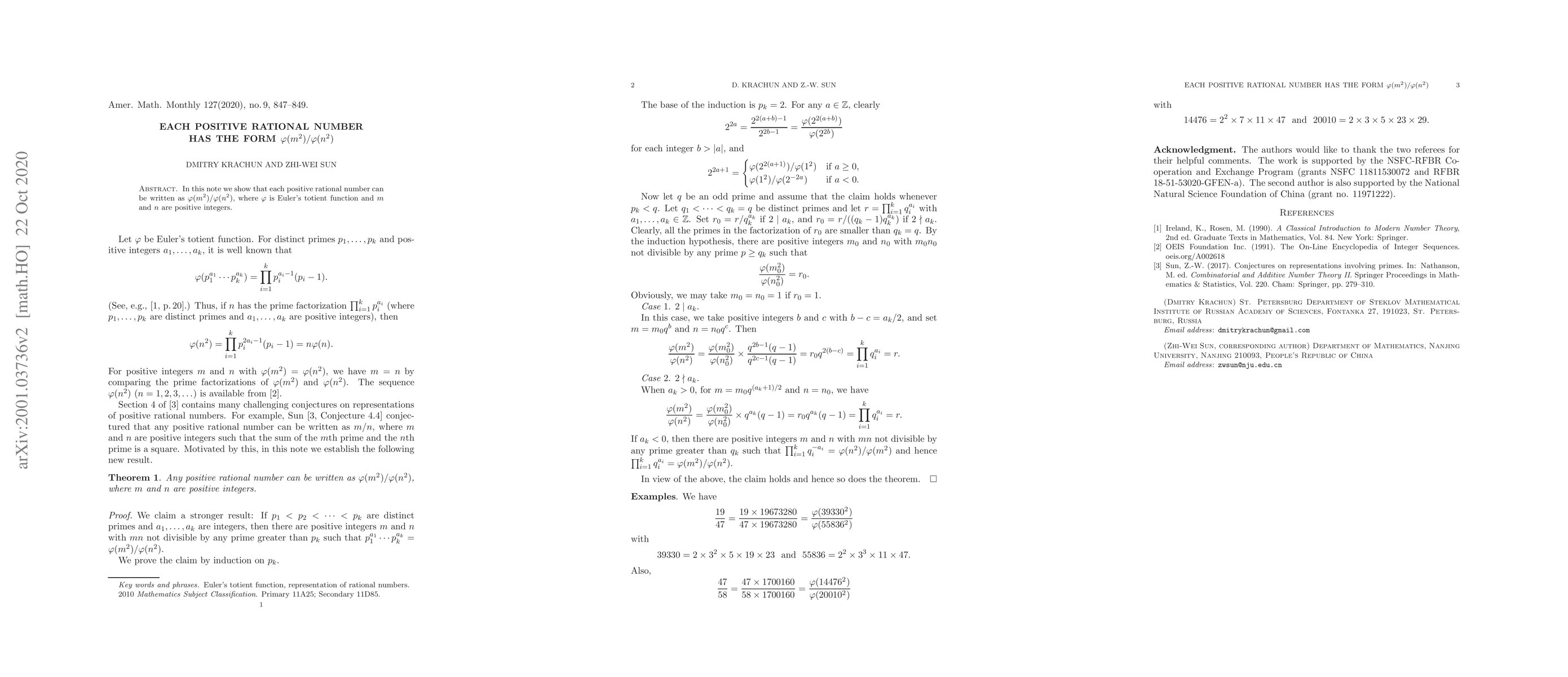 In this note, we show that each positive rational number can be written as $\varphi(m^2)/\varphi(n^2)$, where $\varphi$ is Euler's totient function and $m$ and $n$ are positive integers.